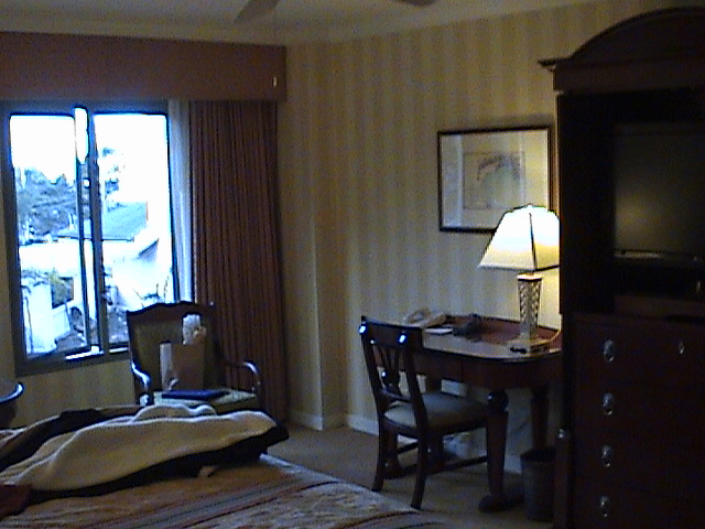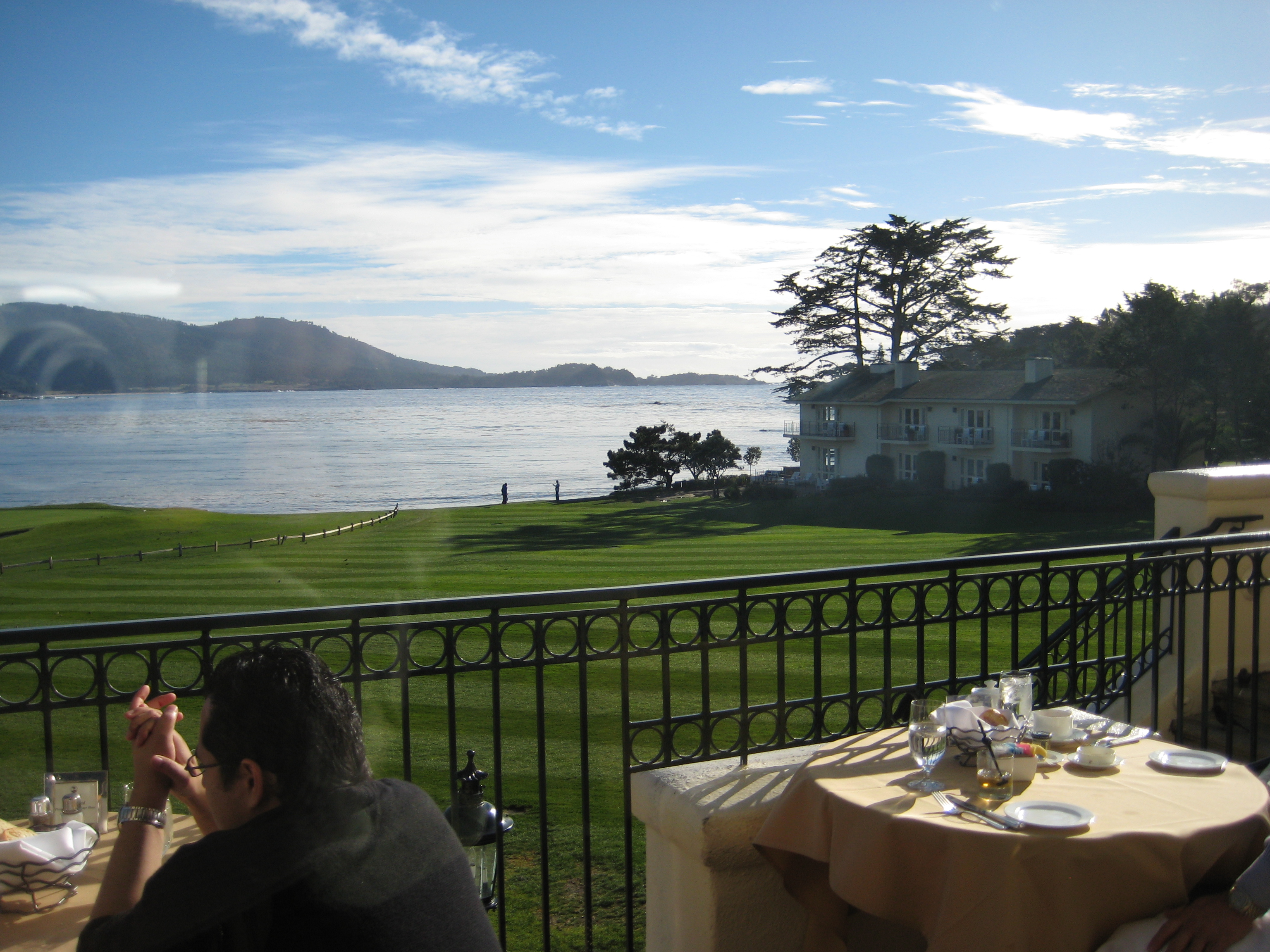 After dinner we walk around the downtown area window shopping (Carmel shops close around 6pm). The streets are illuminated with holiday lights and as I peer in various store windows the aroma of oodles of “greenbacks” overwhelms my nostrils. I predict a lot more “window shopping” will occur tomorrow as well. We head back to the hotel to relax and get caught up on our ESPN Sportscenter. Occupancy at the hotel is very low which creates the mystique that you have the hotel to yourselves – “Living la Vida Loca”.