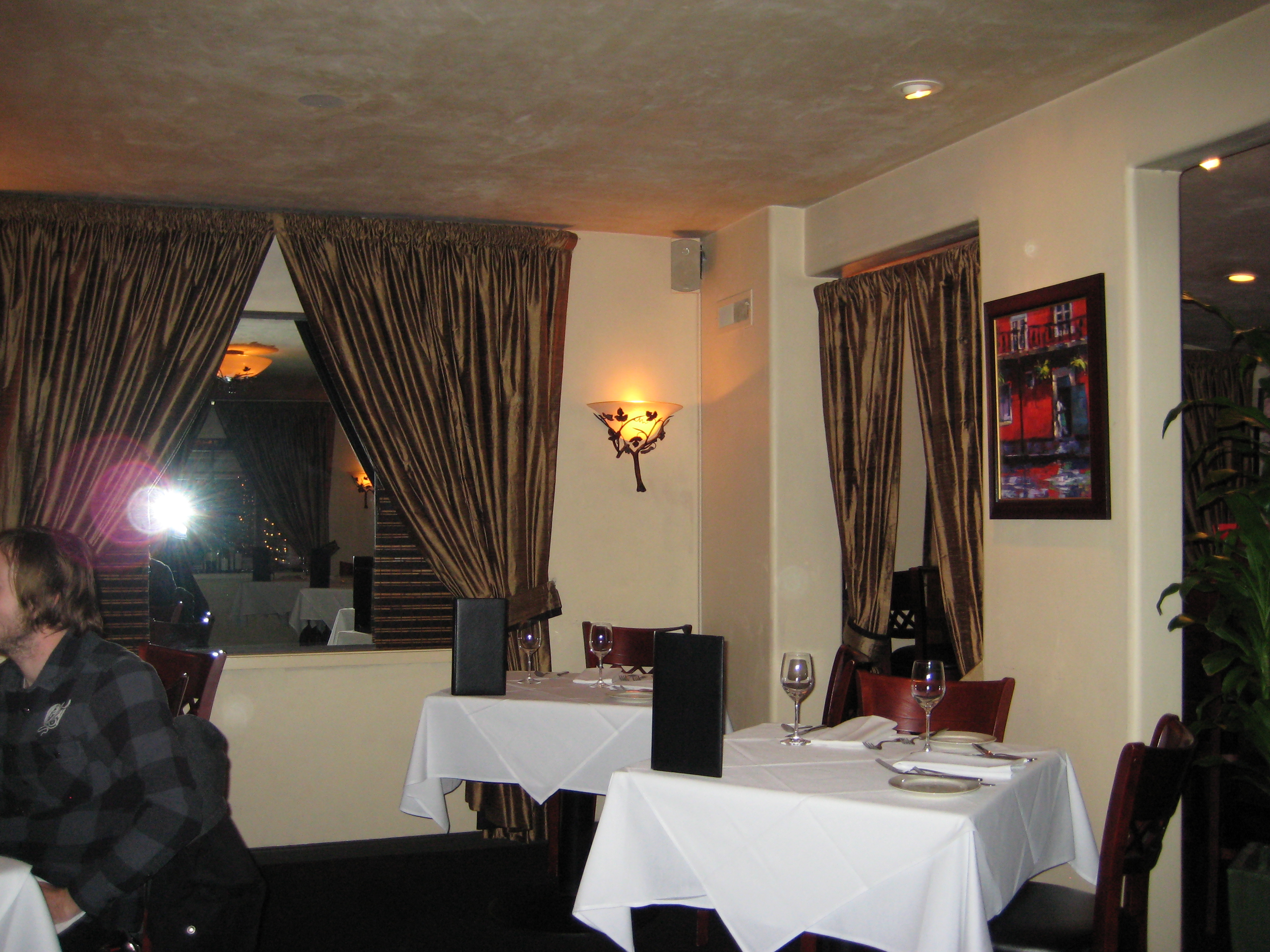 Bella opts for an entrée of braised short ribs in a red wine and port reduction with buttermilk mashed potatoes. I choose the char-grilled New Zealand rack of lamb which is marinated and herb-crusted. It comes with a side of red roasted potatoes. The lamb is very good and perfectly cooked but I think the herb-crusting is a little overdone. I’m not a huge pepper fan and this is very peppery to the point that it competes with the natural flavor of the tender fleshy pink meat.