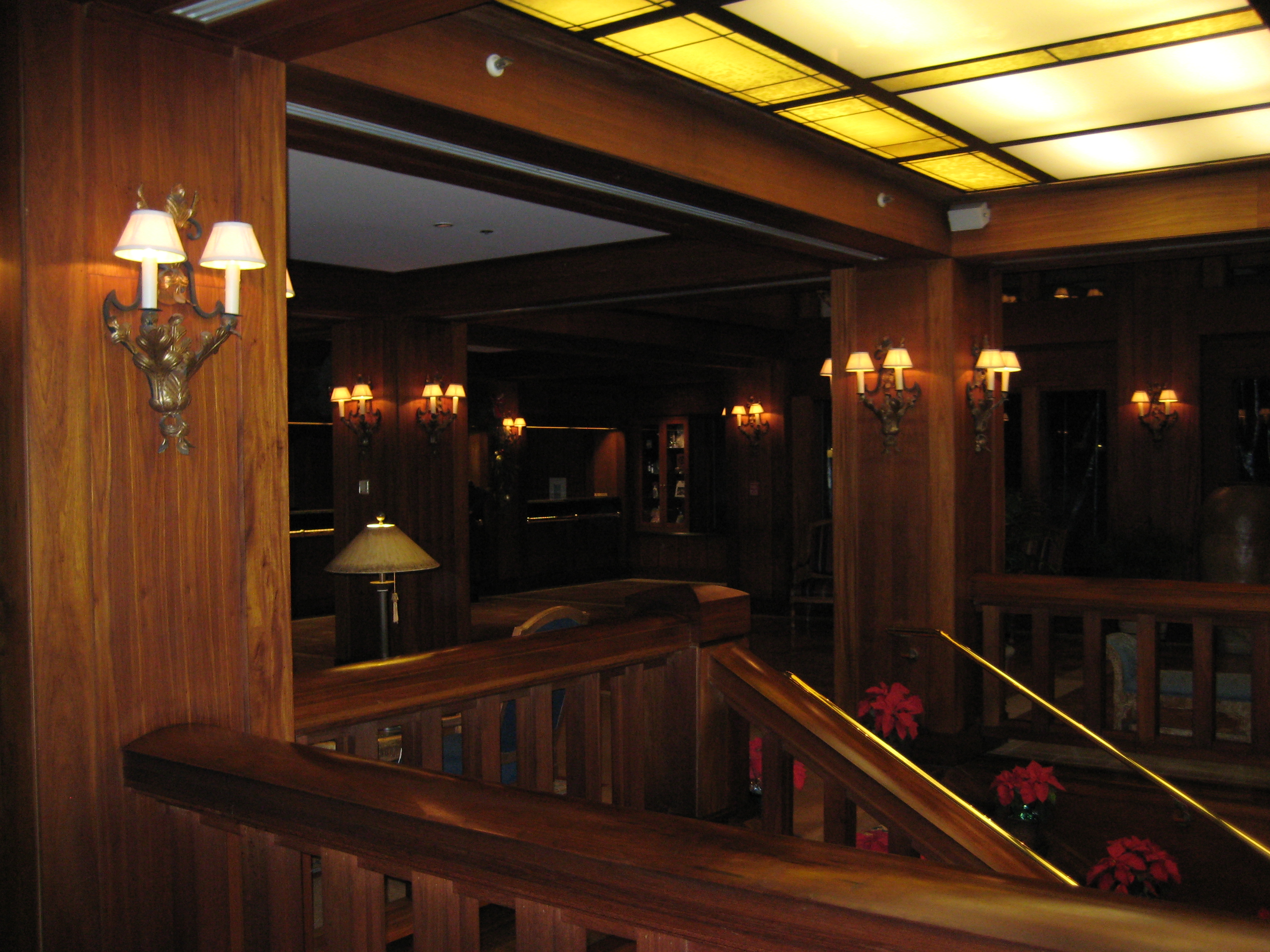 We grab an umbrella and walk through the gardens to the lodge’s Fireside Lounge. The featured act for the night is a grey-haired, ponytailed, singer/guitarist playing 70s’ covers. He sings America, Bread, Gordon Lightfoot, Jim Croce and Paul McCartney to name a few.