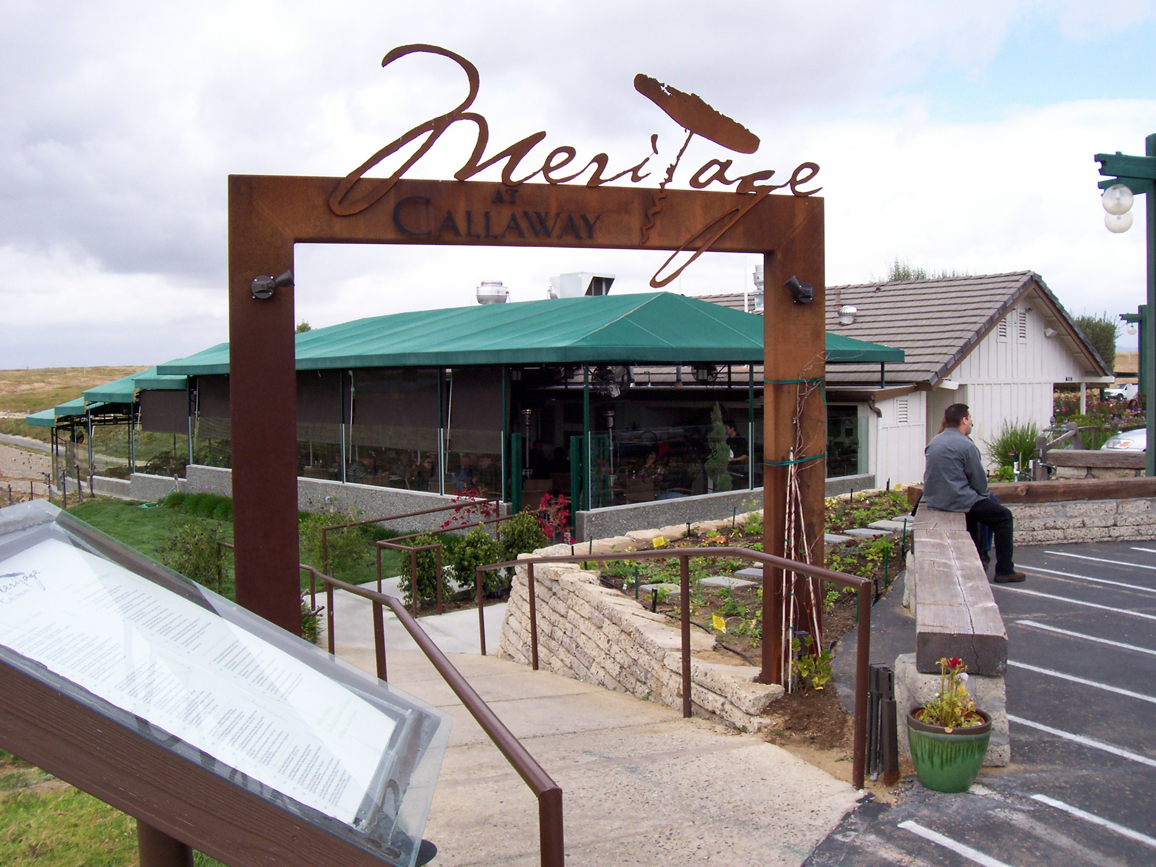 Outside I walk with Tracy and Mike over near the Meritage Restaurant at the back of the property.  I take some photos of the vineyard when I hear a lot of laughter and notice two pretty college-aged girls approaching.  They are dressed in sexy, short dresses as if they were going out clubbing.  I smirk.  They ask me to take their photo and they begin doing sexy girl poses with each other.  I chuckle before saying “you two aren’t going to hold hands are you?”  This behavior is so not typical of what you would see wine tasting in Napa or Sonoma.  The girls laugh and one skinny girl semi-seriously asks if I want to join them at the restaurant.  I don’t bother referencing the “metal” on my hand but politely decline the kind offer.  Tracy, Mike and I have a nice laugh on the way back to the shuttle.