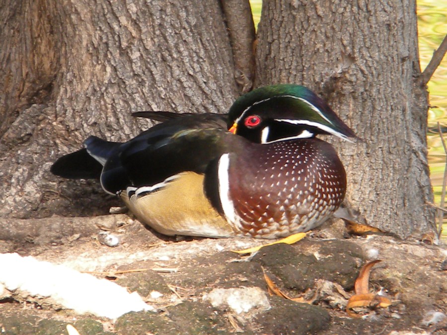 Wood Duck Napping Near Tree