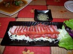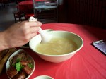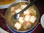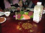 A host seats us and we are immediately served a series of dishes of meats, fish, vegetables and soup. The food is quite good and there is plenty to go around.