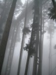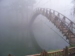 We venture across a traditional bamboo bridge that guides us into this enchanted forest. This takes me back to my days visiting the UC Santa Cruz campus. Of course this is significantly prettier with heavy fog, mist and more diverse plant growth. Around the corner chocolate brown “Pallas” squirrels are scurrying up and down the trees as people drop crumbs of food.