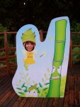 Bella, Mama, Papa and I are on our way to Sun Moon Lake. The roadsides have rectangular-shaped “sun dial” looking devices on top of freeway signs. Papa educates me that these solar powered devices collect the sun’s rays so that signs will illuminate at night without using electric power. Off the coast I spot many gigantic windmills with airplane type propellers. Papa advises us that these are another “green” effort by the Taiwanese to generate electric power.