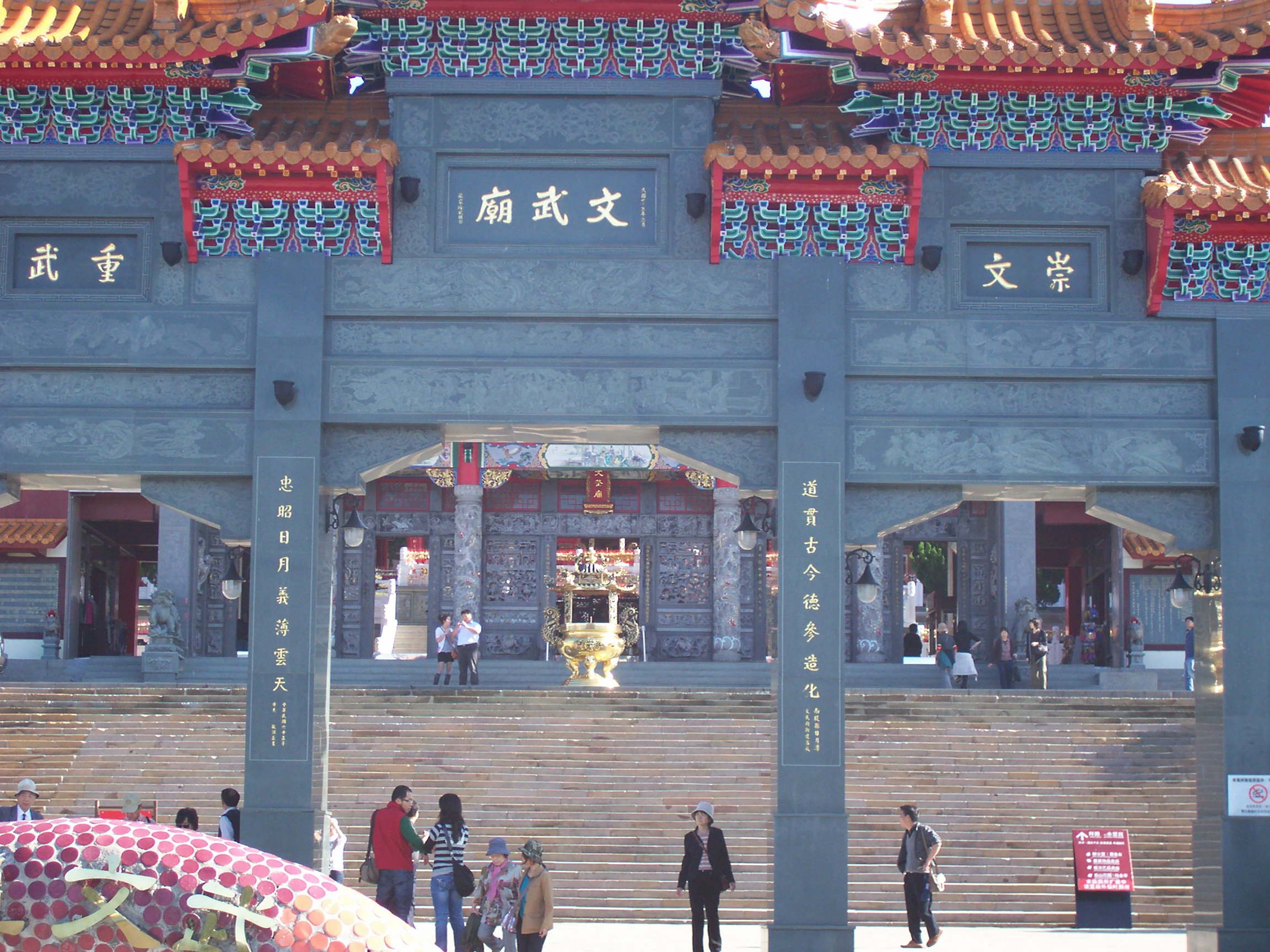 This famous temple was built in 1938 and renovated in 1966 in the Northern Dynasties style with a color focus on gold. We have a nice view of the lake from up here. Papa purchases a lantern shaped charm on our behalf that signifies “family”; we sign it and hang it along a rail just outside the temple. See the photo.