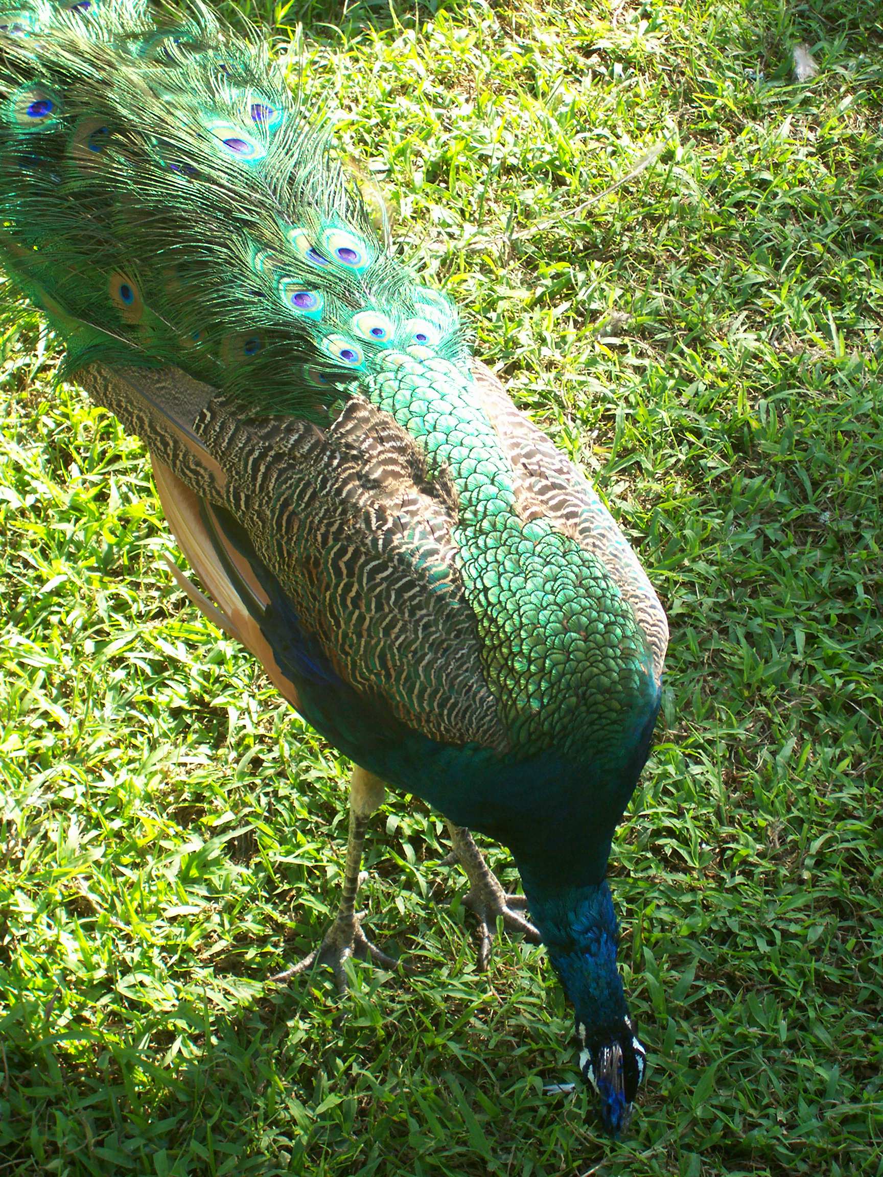 Peacocks are roaming about. Other bird species of Taiwan are located in pens around the corner.