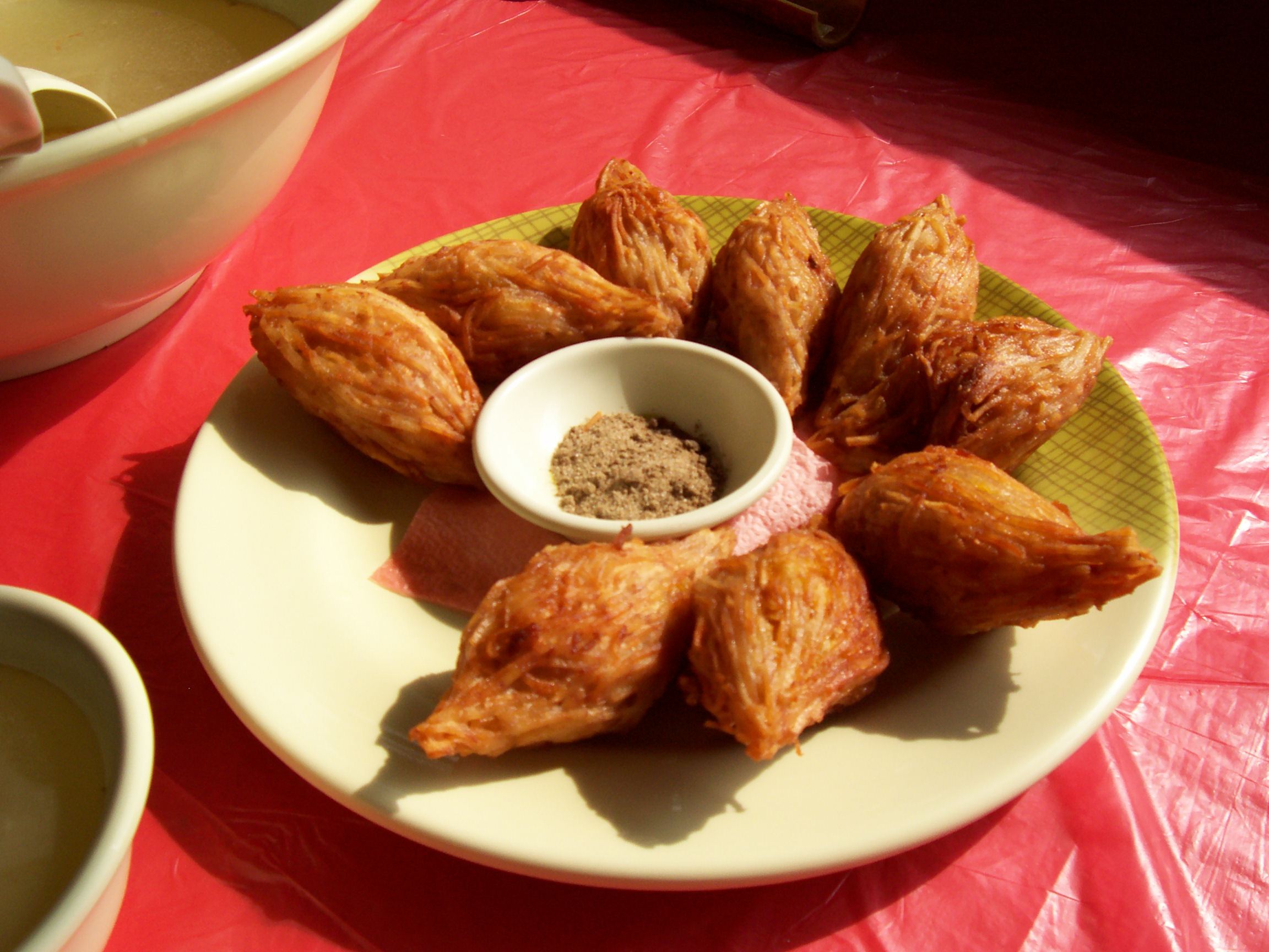 We devour plump fried pumpkin cakes (shredded pumpkin strands inside and blended into the outside), a whole clay-oven roasted chicken (yes, “the head is smiling at me”), a green veggie dish and a light-flavored soup. I am BEYOND full. Afterwards, we roll ourselves into the car and traverse further up the mountain.