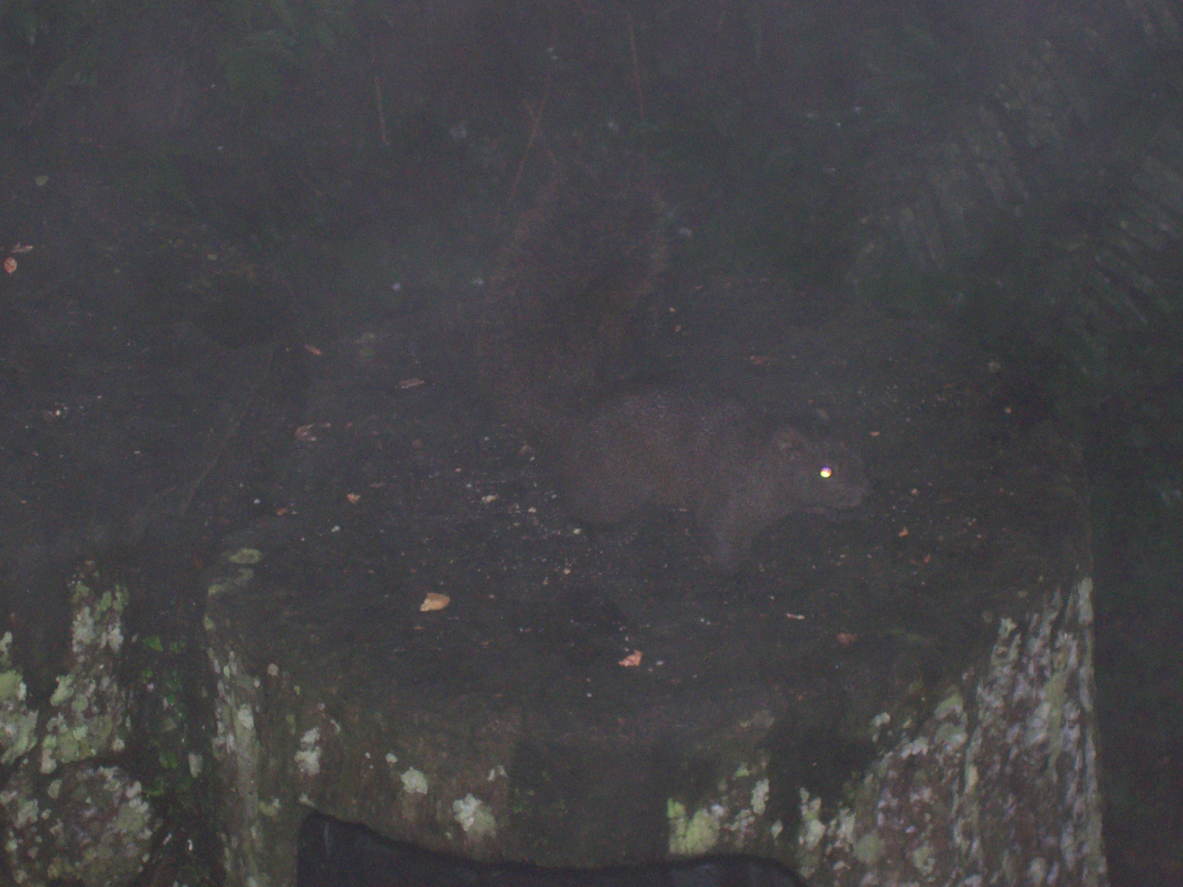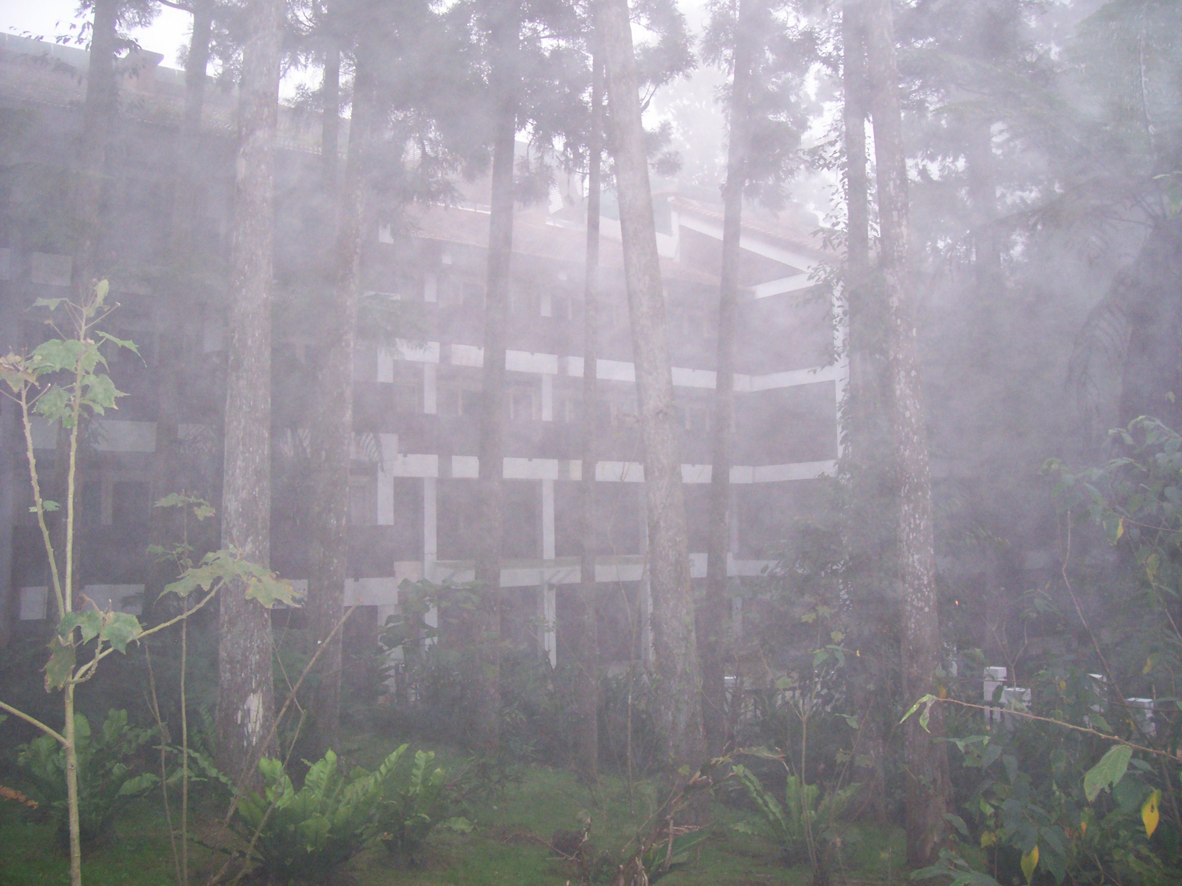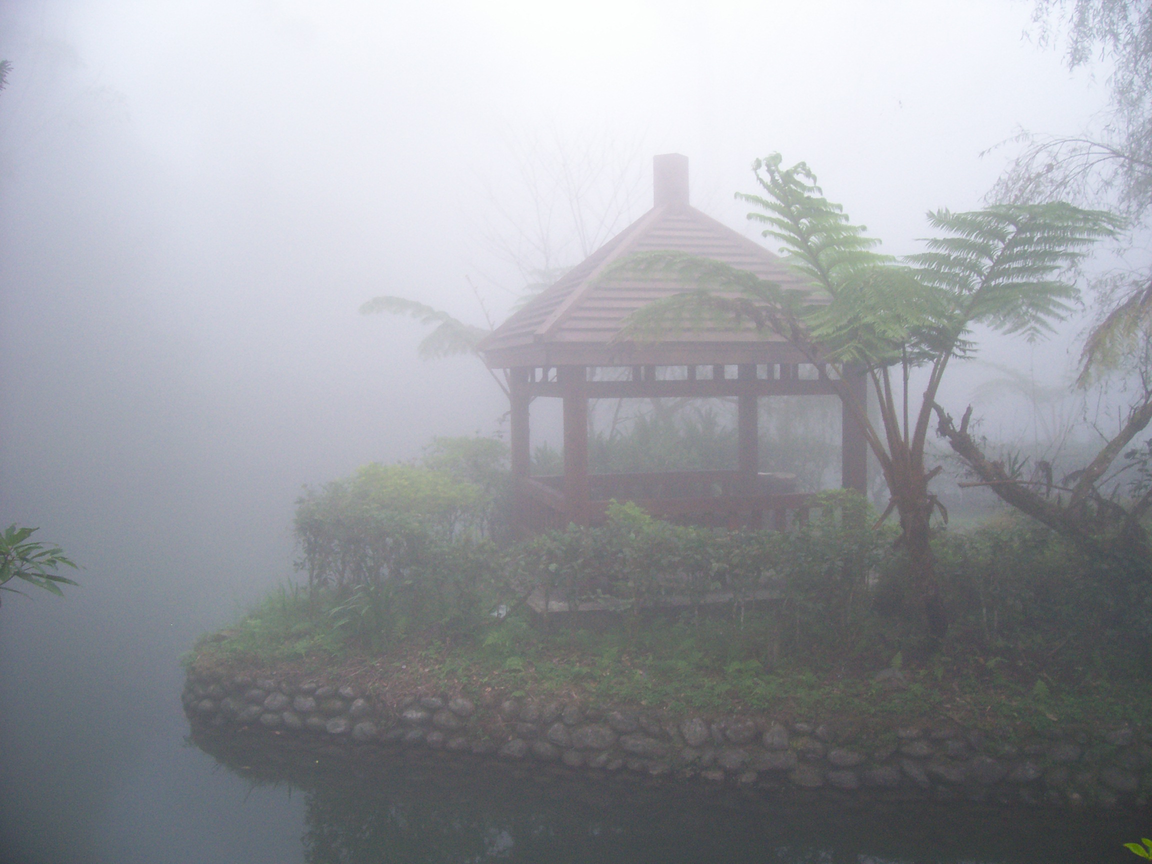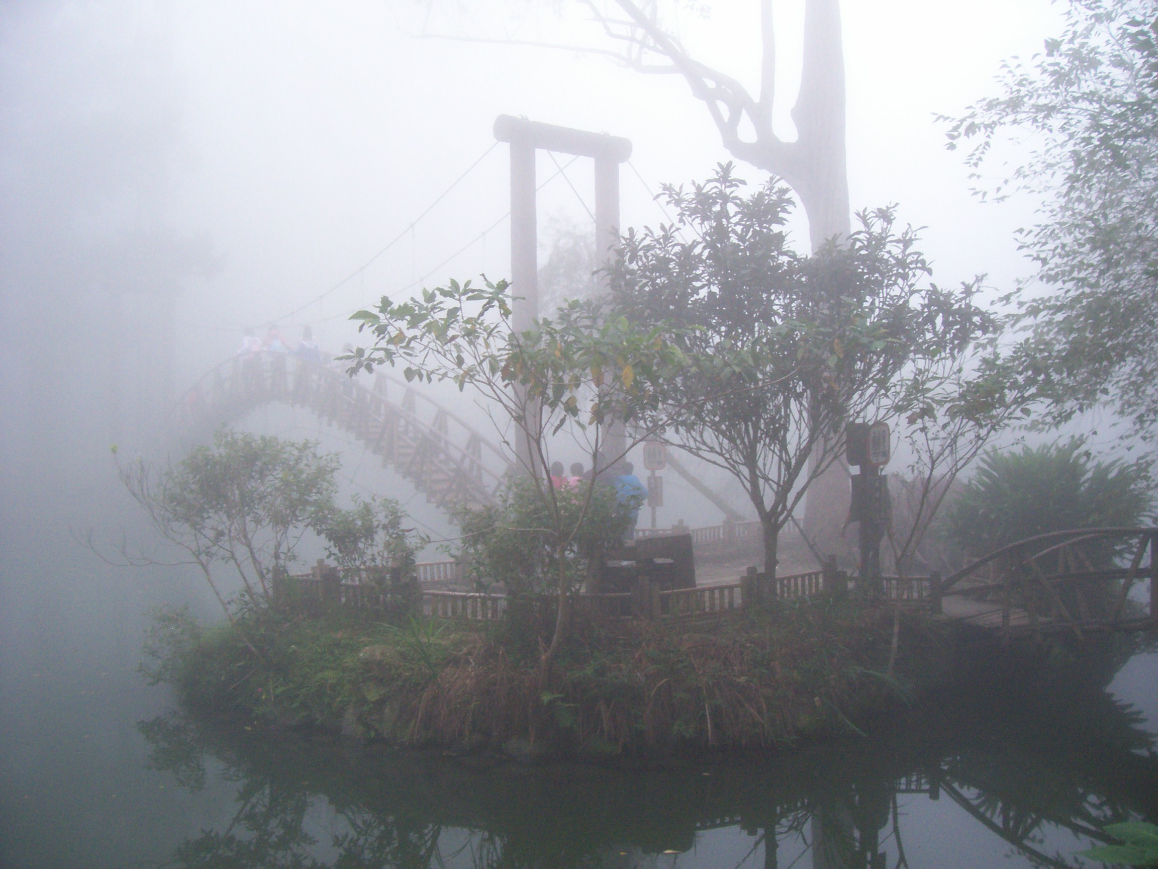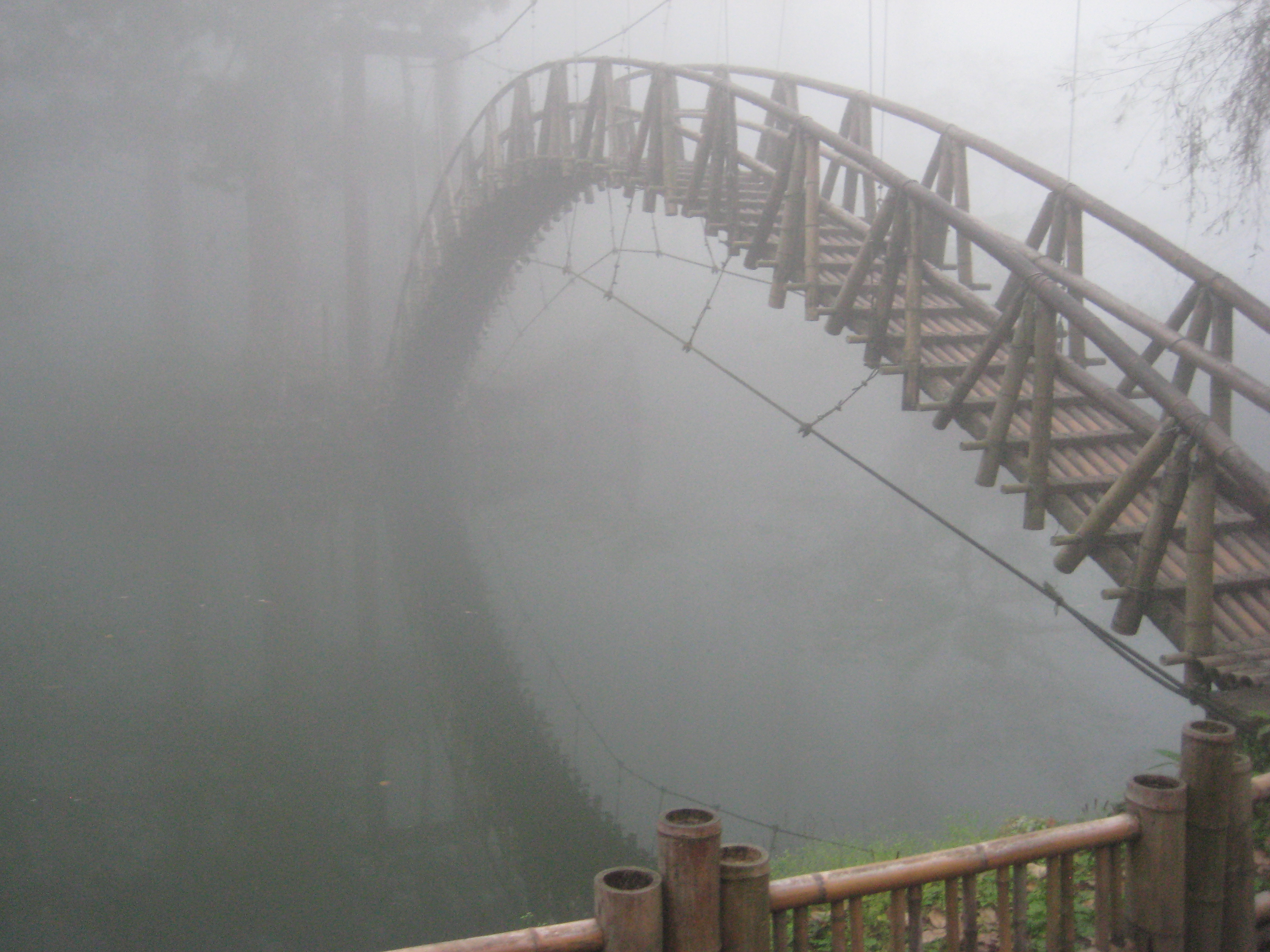The pluses include the chocolate brown squirrels, the Taiwan University botanical area, the multiple sightings of gray-cheeked fulvetta birds, and the “walk above the trees” (metal walkway built 100 feet above the ground). It is a remarkable experience to be able to walk along this metal walkway in the sky through the fog and mist and peer down to the grounds below. There is a slight wobble felt when walking although you can see it is newer construction so that makes it less daunting.
