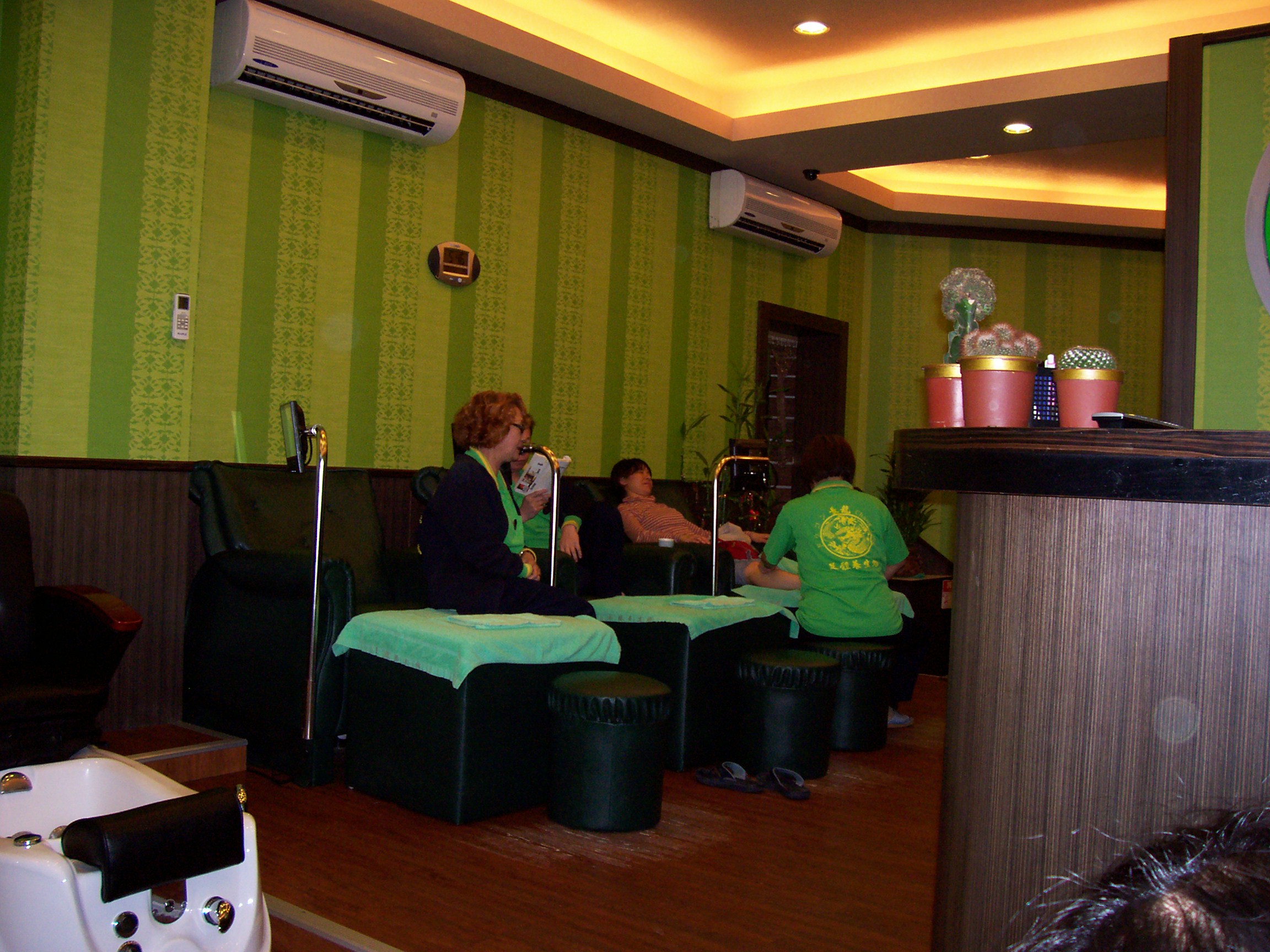 The exterior of the house is typical Taiwanese with white tiles. The interior consists of room to room built-in maple cabinetry and dark faux mahogany wood floors. It is a 1600 square foot, three-bedroom with loft, three-level townhouse. I am immediately grateful to Bella’s parents as I notice last year’s bed (see “wannabe concrete” Fred Flintstone bed) made out of crushed coconut shells has been retired to the loft. Thank you Mama and Papa Tseng; my spina bifida, scoliosis and sciatica conditions thank you in advance.