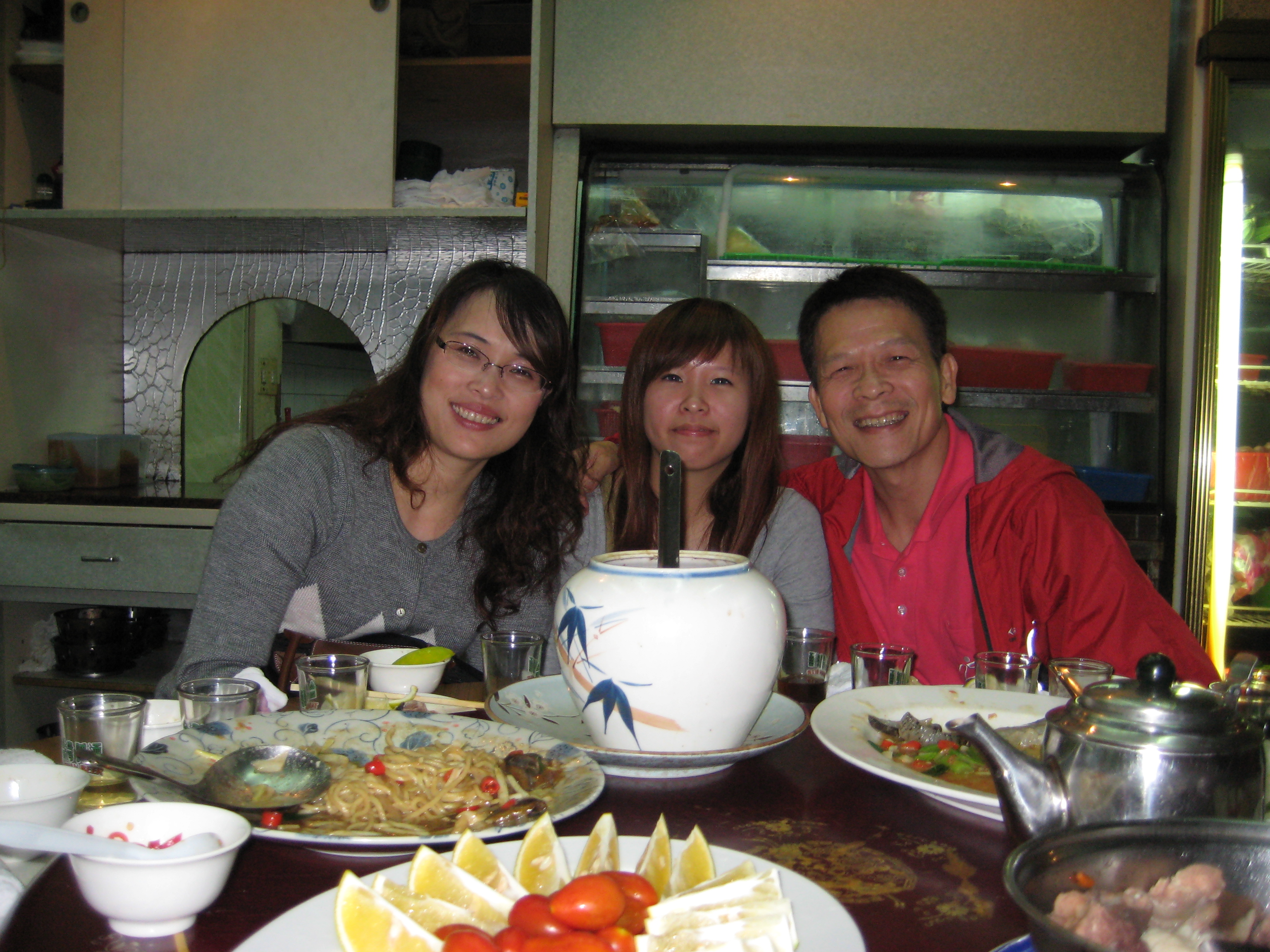 Back in town we park at Taiwan University. We dine on a chicken appetizer, fried shrimp cake (served like pie slices), whole steamed fish and fried tofu. The shrimp cake is simply amazing. After dinner we drop dad near the city apartment.