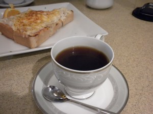 The tuna melt pizza toast is served on Japanese bread and is very good with a soft and doughy crust. My Colombian coffee is medium in body, has above average acidity, is beyond smooth and possesses a beautiful aroma. They serve their brew in ultra-thin fine China (Japanese brand Noritake) which improves the taste as it rolls across your lips. It is similar to what occurs when you sip wine out of a thick wine glass versus an ultra-thin one. I add a 100% Kona coffee to finish the remainder of the cake. It is a medium roast, slightly sweet and even smoother than the Colombian coffee.