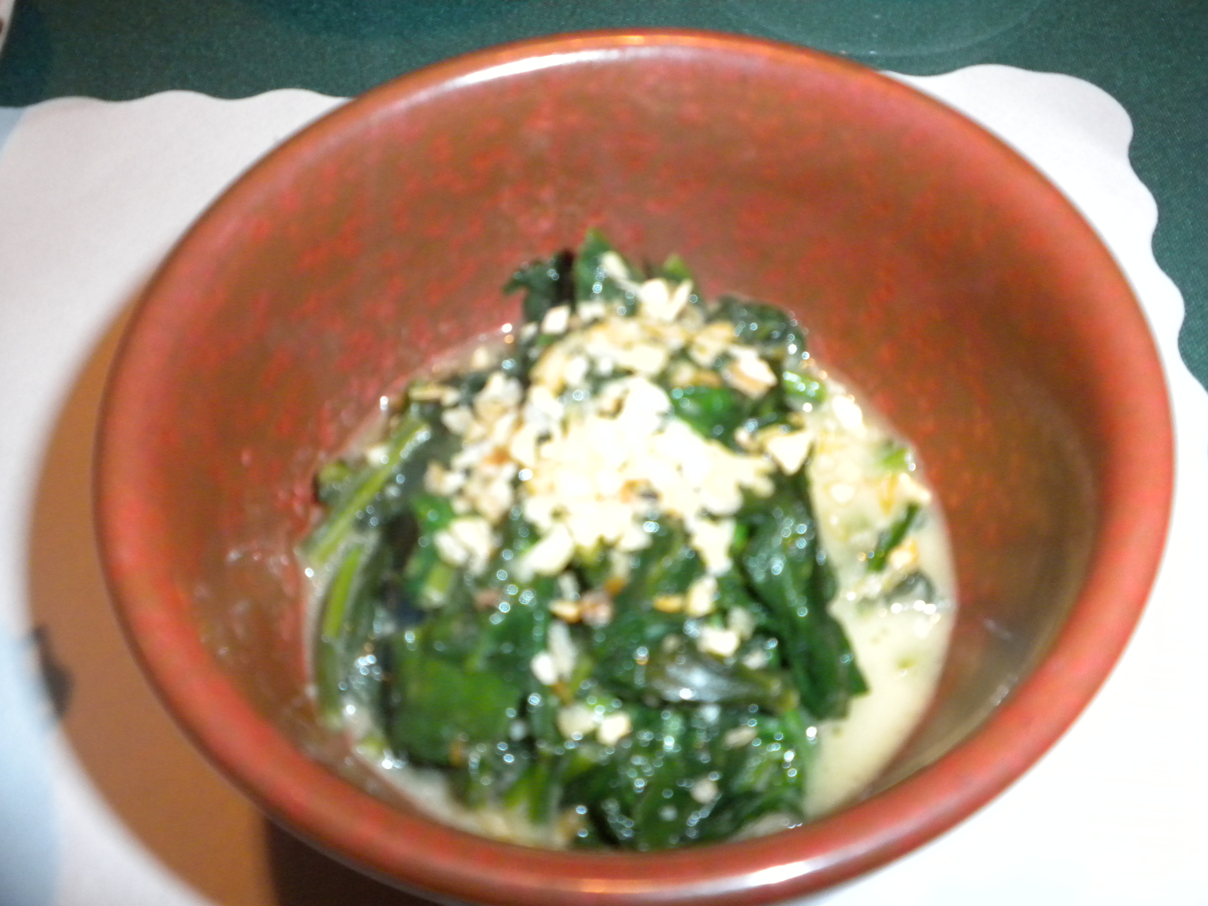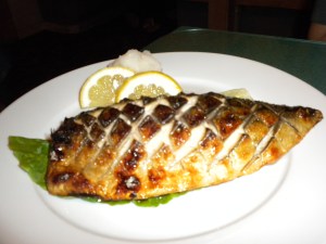 The sautéed garlic spinach is swimming in a buttery, garlicky broth – and I’m not complaining. If American restaurants prepared green leafy veggies like this most Americans would “eat their veggies”. Flecks of fried garlic sit on top of the spinach.