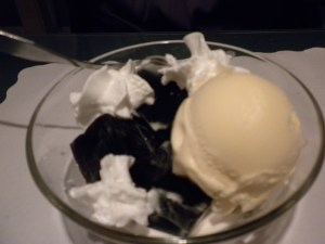 Their coffee jello has whipped cream on the edges of the bowl and French vanilla ice cream (various flavor choices). The jello tastes of strong black coffee and combines beautifully with the French vanilla ice cream. It is one of the few times I’d opt for French vanilla over vanilla bean ice cream (if it were available).