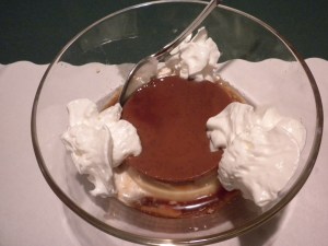 The Japanese pudding is similar to a Brazilian flan (no cinnamon) and rests in a thin caramel sauce with whipped cream on the edges of the bowl. The texture is a little smoother and slightly less egg-rich than most flans. Regardless, it is one seriously tasty dessert.