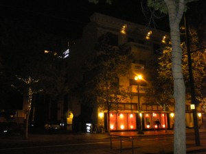 We walk by the Fairmont Hotel (likely the fanciest in downtown), a bake shop, my art-house movie theater and a coffee house from my college days. The downtown feels “fairly” safe but it is still really darkly lit and there are some questionable looking citizens traversing the streets. When I attended SJSU the downtown was deader than a 30 pound housecat caught on a German autobahn. Also, it wasn’t known for being very safe but city officials were attempting to improve that.
