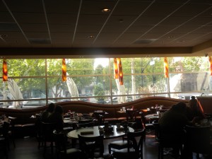 Bella and I drive to the Yard House (A: 300 Santana Row, San Jose, CA 95128. P: 408-241-9273. W: yardhouse.com)to meet Bella’s high school classmate Jennifer. I recall this area being an older shopping plaza with the dark brown wood look popular in the 70s’. Now it is one of those (popular in California) upscale live, eat, shop and entertainment centers. I order a walnut pear appetizer salad with field greens, blue cheese, candied walnuts in a balsamic vinaigrette dressing. I enjoy my favorite beer, Pyramid Hefeweizen with a lemon slice.