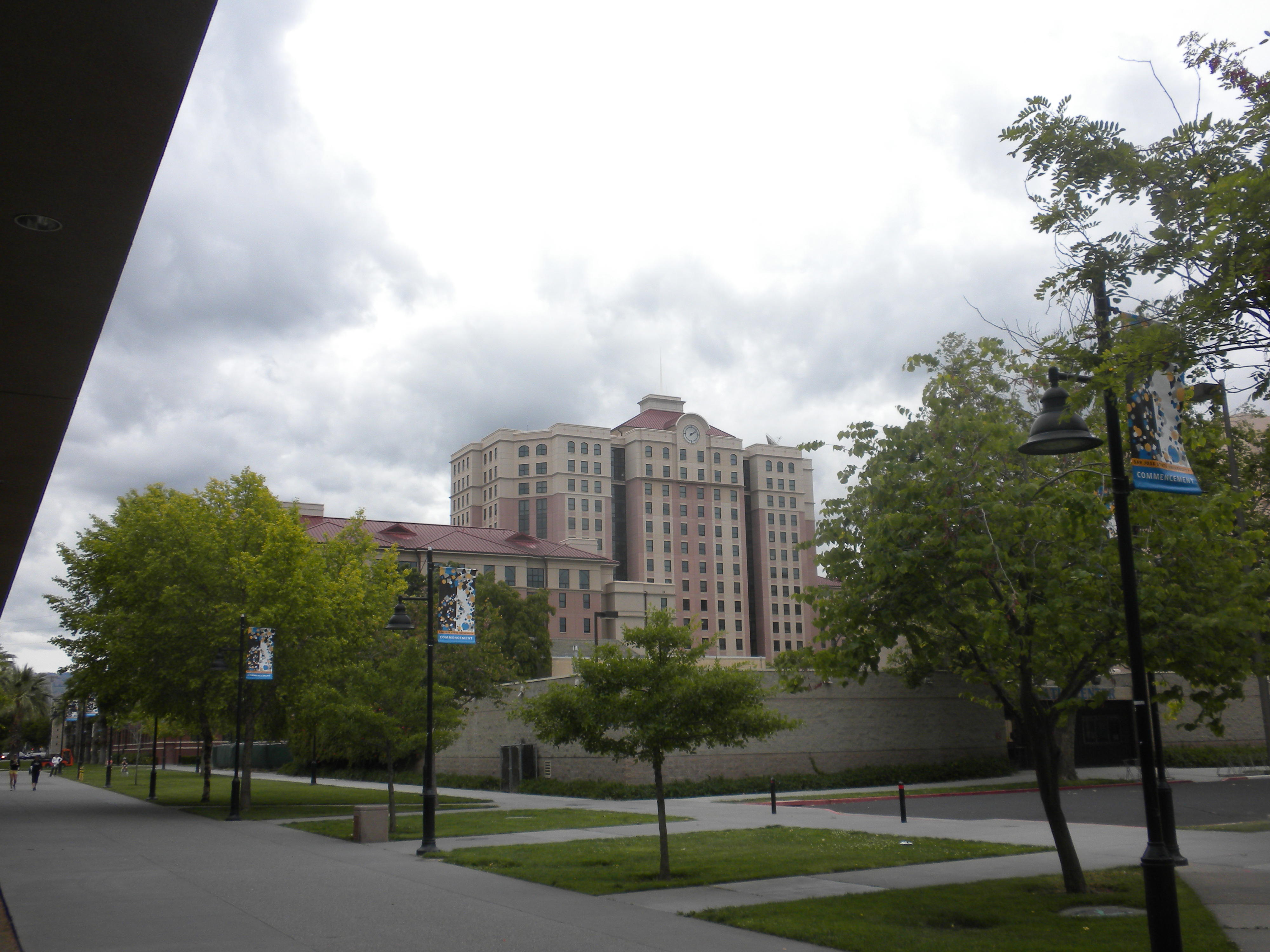 Nearly three hours have passed and we’re now in the lobby meeting Bella’s friend Joseph and his wife Diana. We take a walking tour of the San Jose State University (A: One Washington Square, San Jose, CA 95112. W: SJSU.edu) campus past the Instructional Resource Center (formerly the “new library”), Dwight Bentel Hall (Journalism Department), Hugh Gillis Hall (Radio, TV & Film Department), the new Dr. Martin Luther King Library, the San Jose State Event Center & Sports Club, Morris Daily Auditorium, Royce Hall, Joe West Hall and Campus Village.