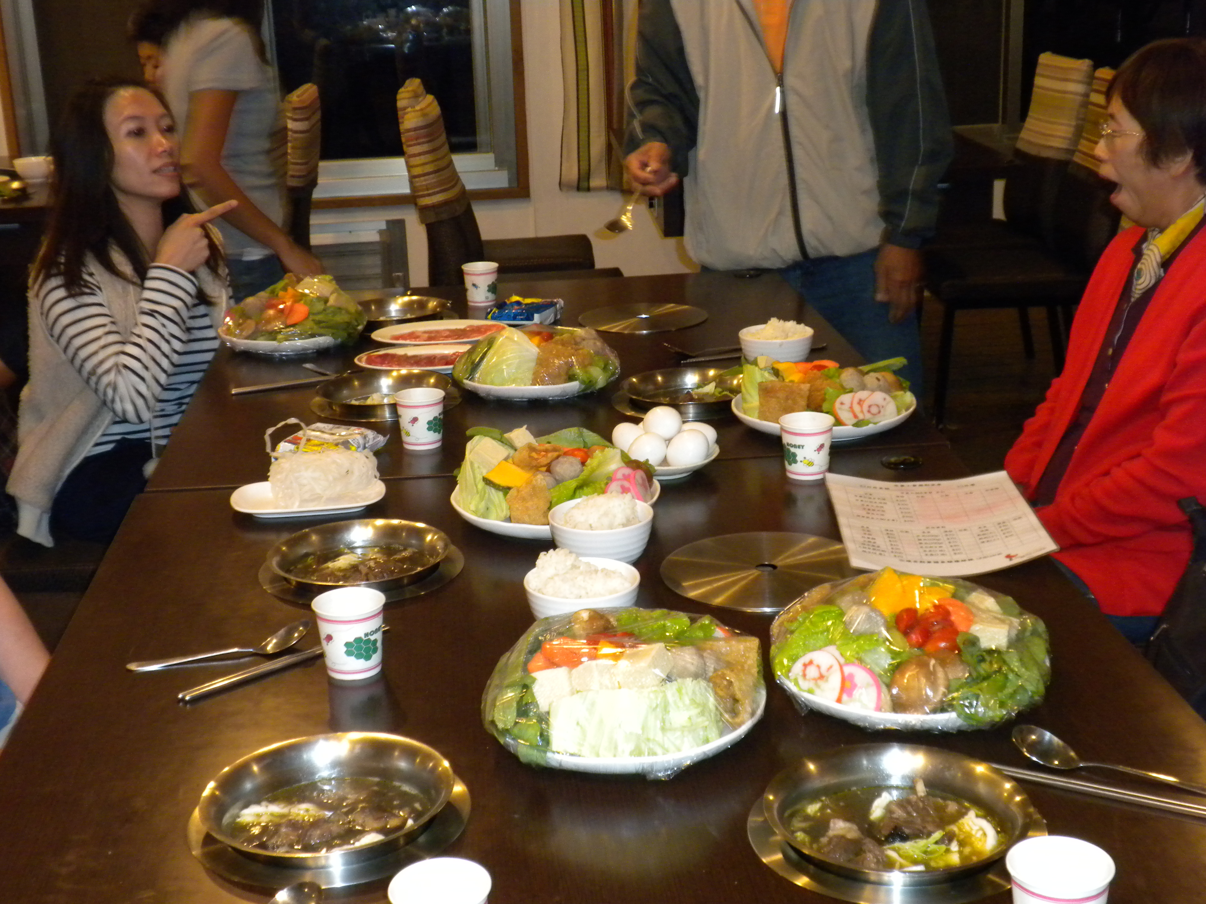 Tonight we stay at the Bunun Tribal Leisure Farm (W: bunun.org.tw). Surprisingly, they are offering Taiwanese “hot pot” which involves cooking your own meat and veggies and eating piece by piece as you cook. Multiple sauces are available for dipping. This is dad’s first “hot pot” experience and he enjoys it.