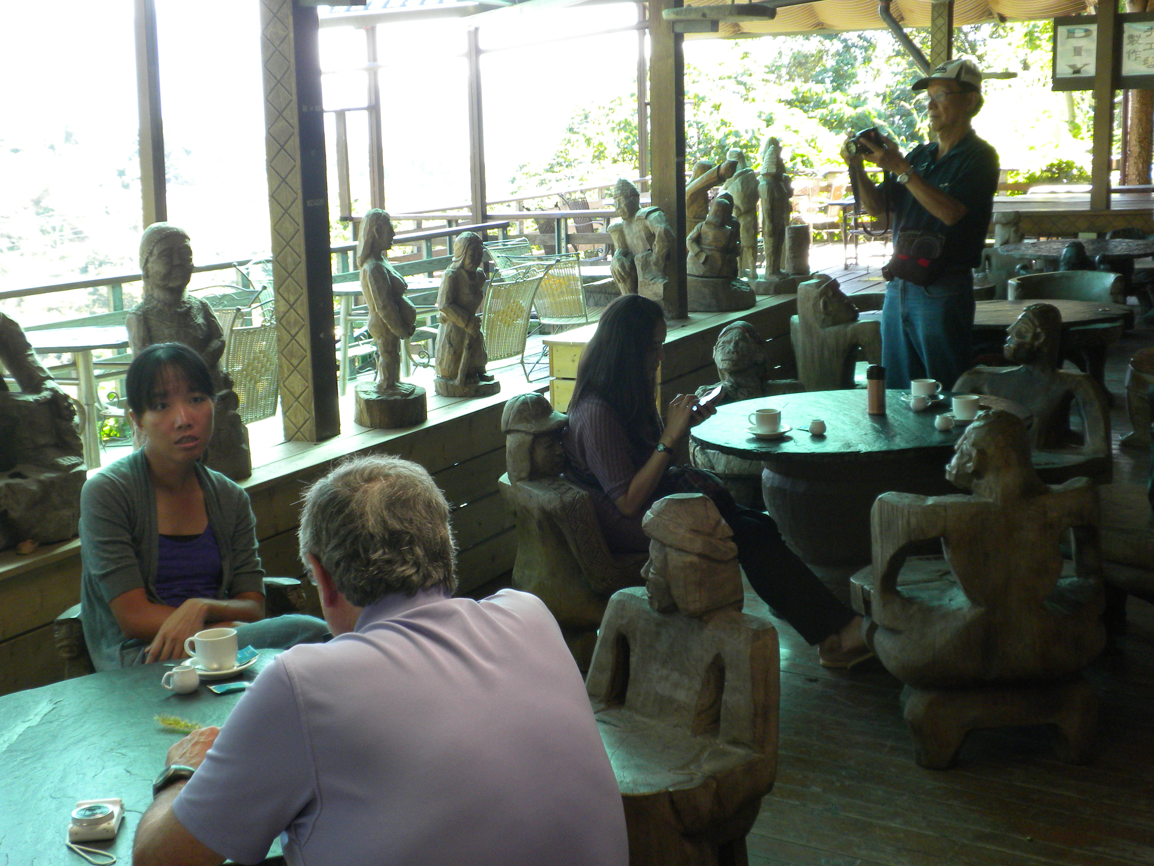 Initially I thought this guest at the Youth Center traveled with her own brewing kit. After breakfast I see it in a box in the lobby so possibly the Youth Center owns it. Both tea and coffee are grown on Ali Mountain.