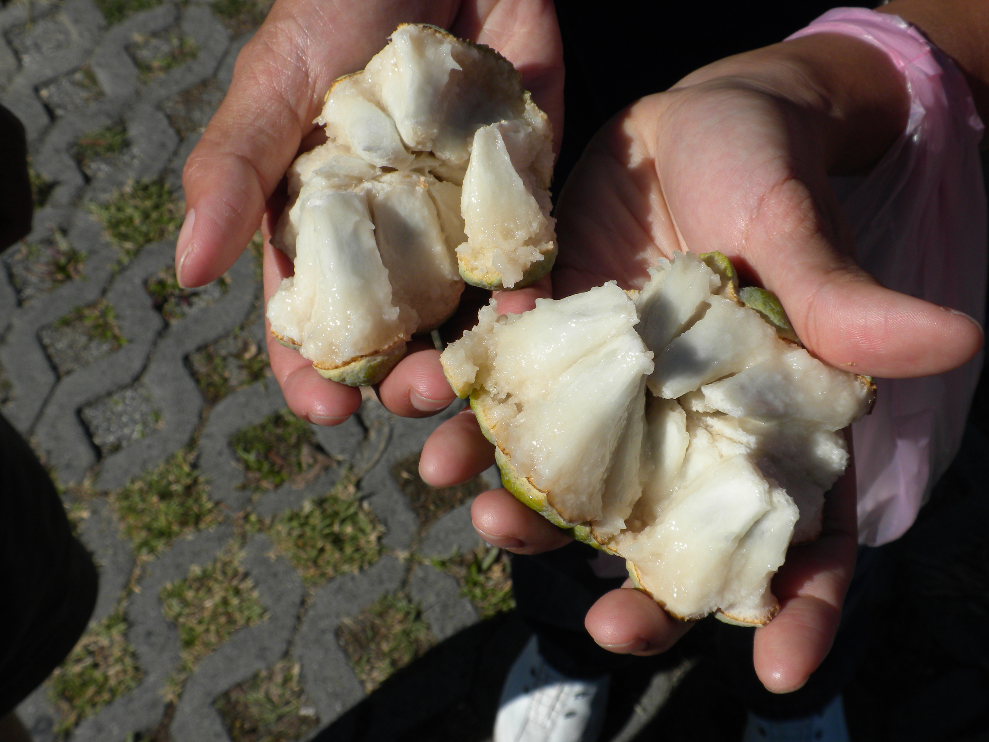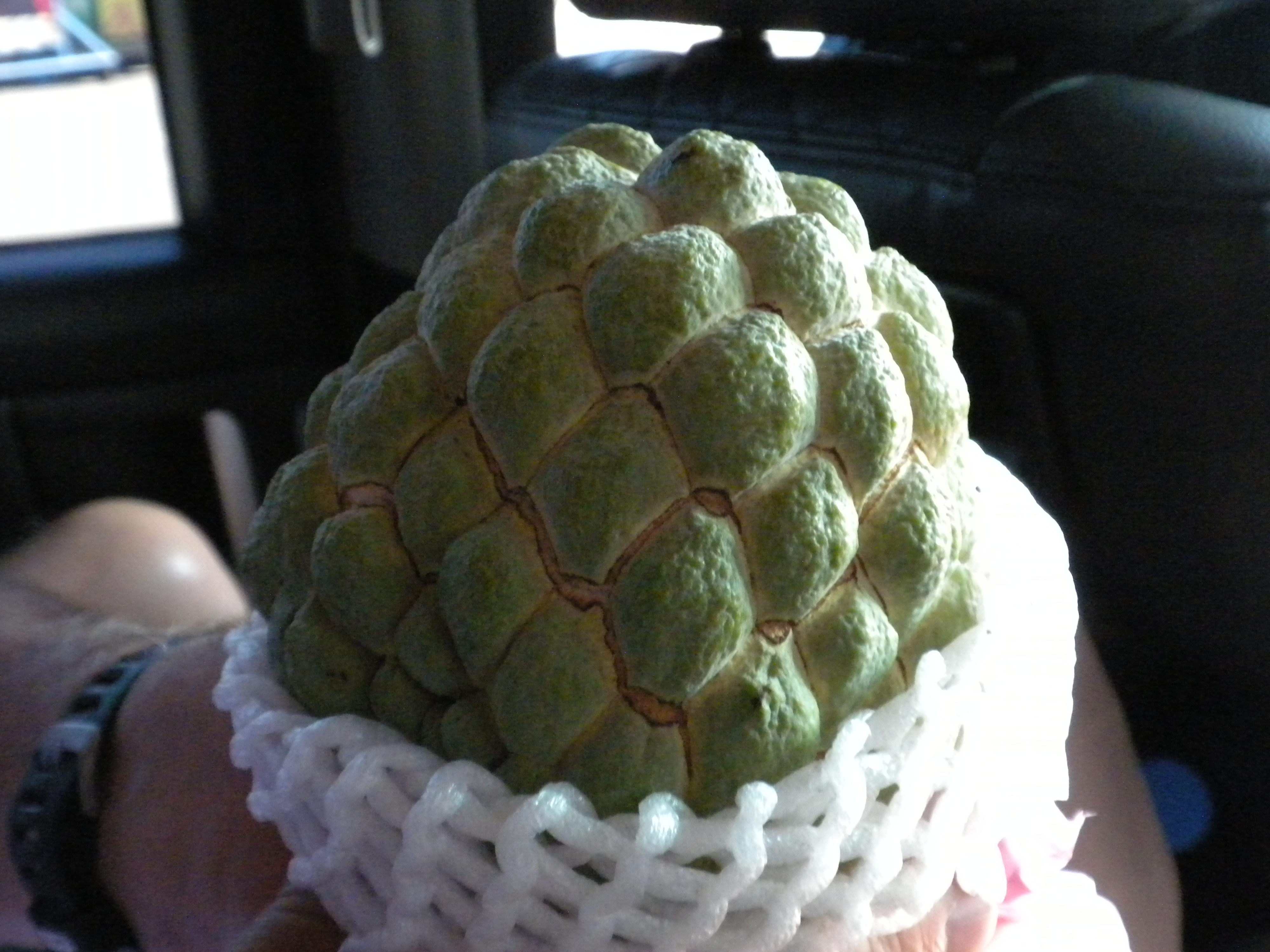 We purchase this “Cherimoya” (a.k.a. “Buddha Head”) fruit from a roadside vendor.