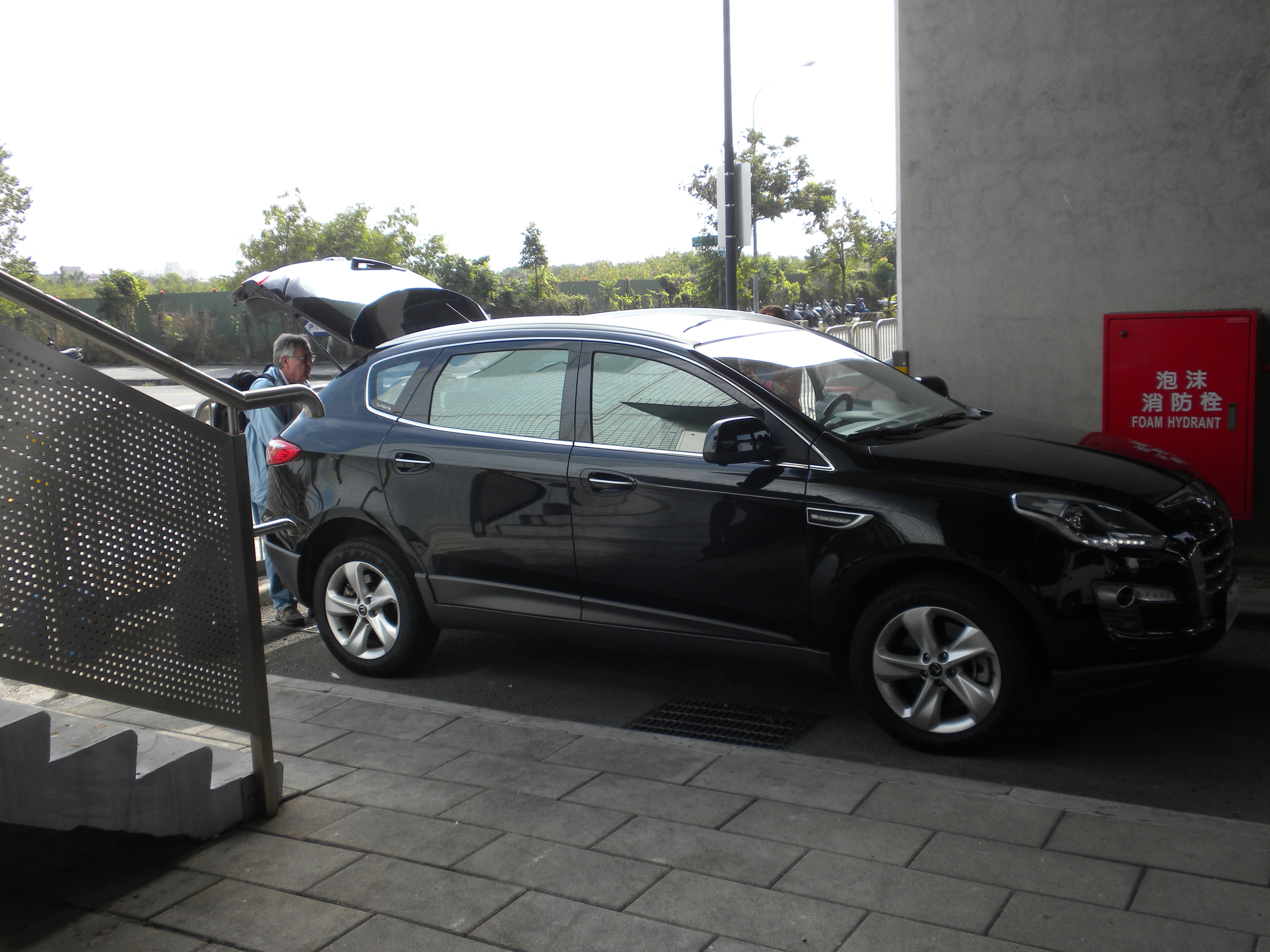 I nearly “puke brains” as a seriously smelly dumpster is nearby. The rental process takes forever in Taiwan compared with the U.S. so we are near “Smelly Nelly” for over 30 minutes. Also, one of the seat belts is buried and it takes an employee forever to locate it and free it. The odor is as if a giant pig ate a skunk and then puked and blew out his o-ring simultaneously. Horribly smelly…