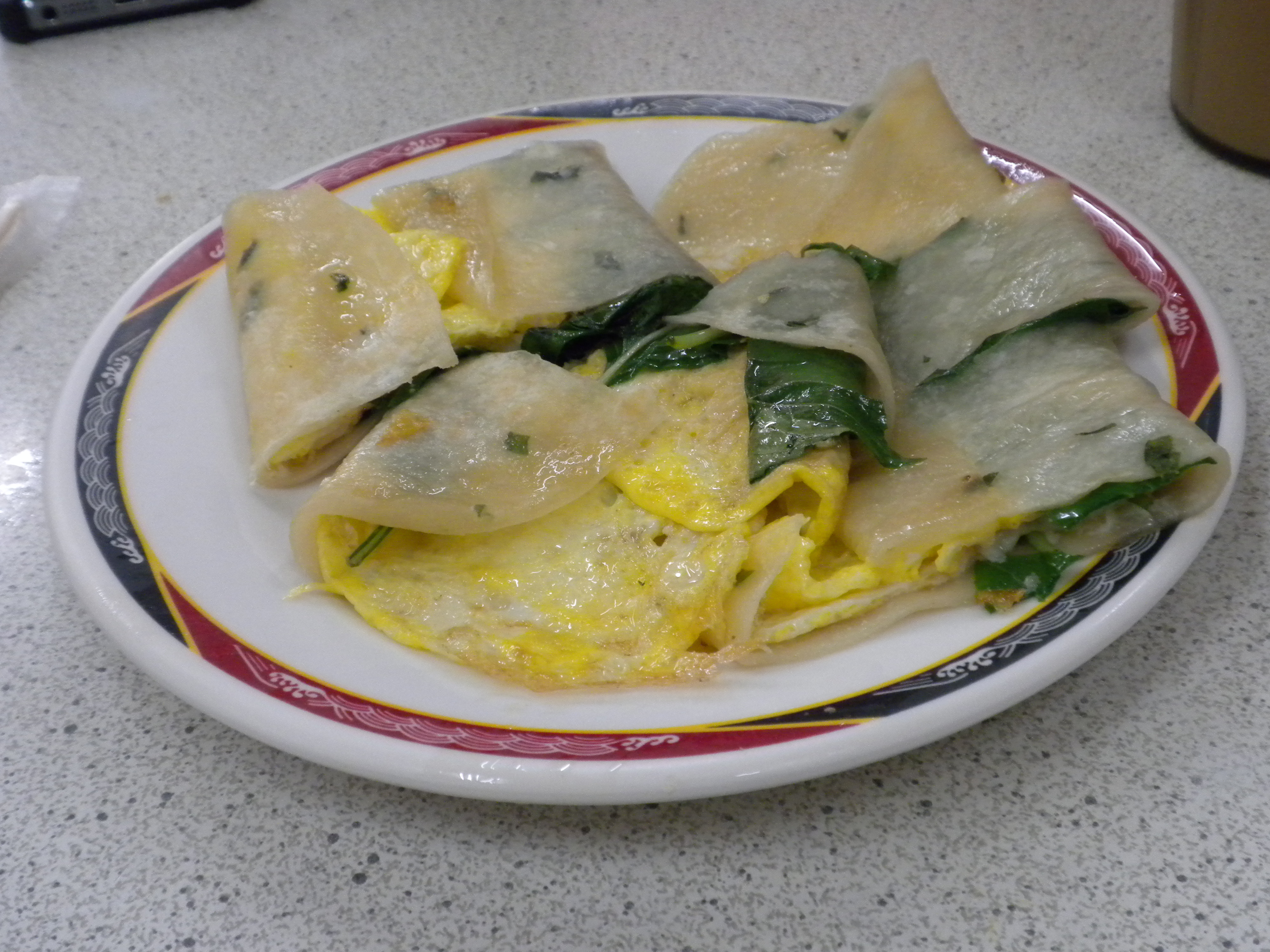 So simple and yet so tasty. The rest of our Taiwanese breakfast consists of fresh soymilk, cold milk tea and a soft and airy long doughy bread which if it were lightly dusted in table sugar or honey would be — A-M-A-Z-I-N-G! I know, I know, “whitey tries to turn everything into a donut”.