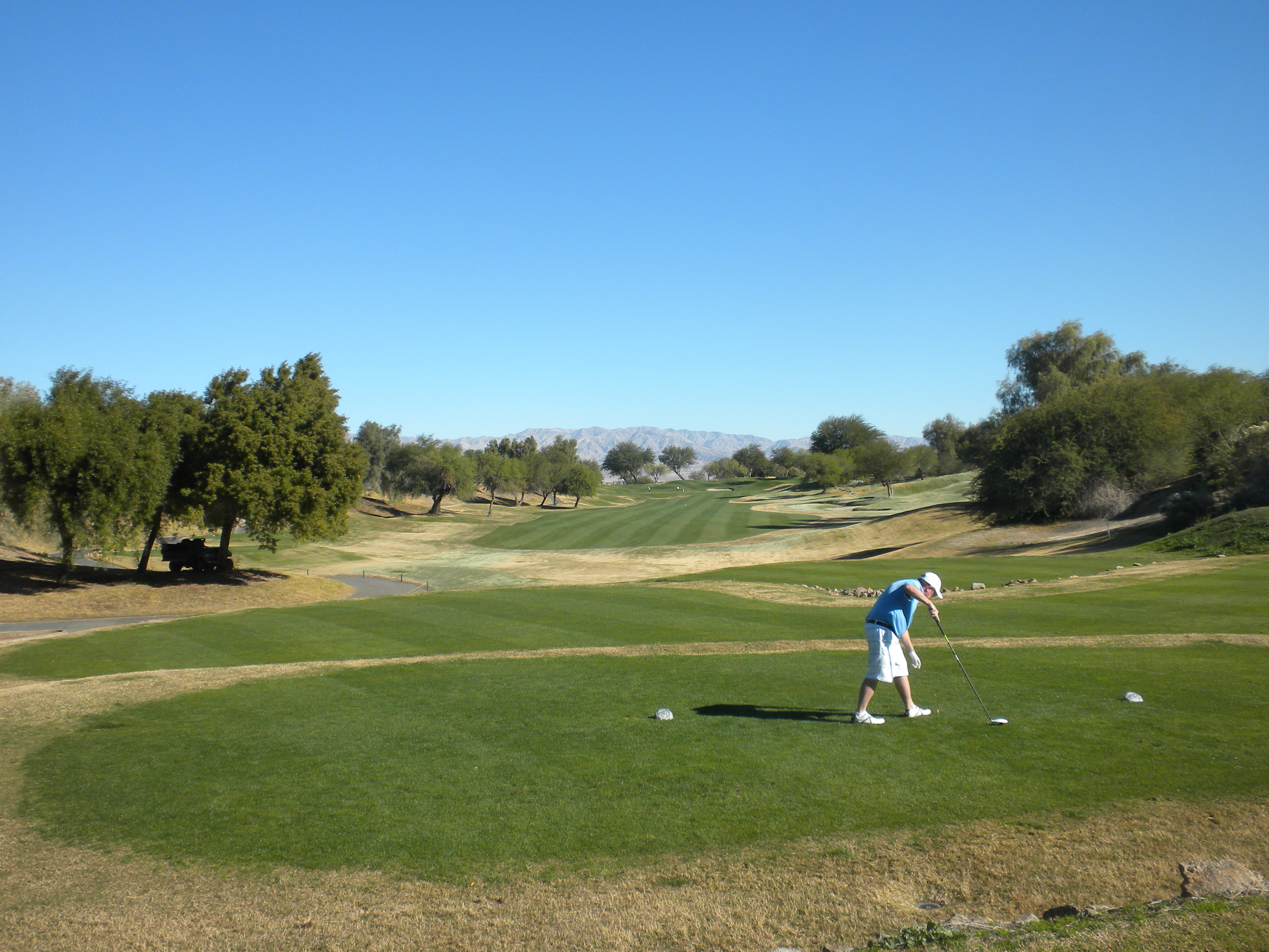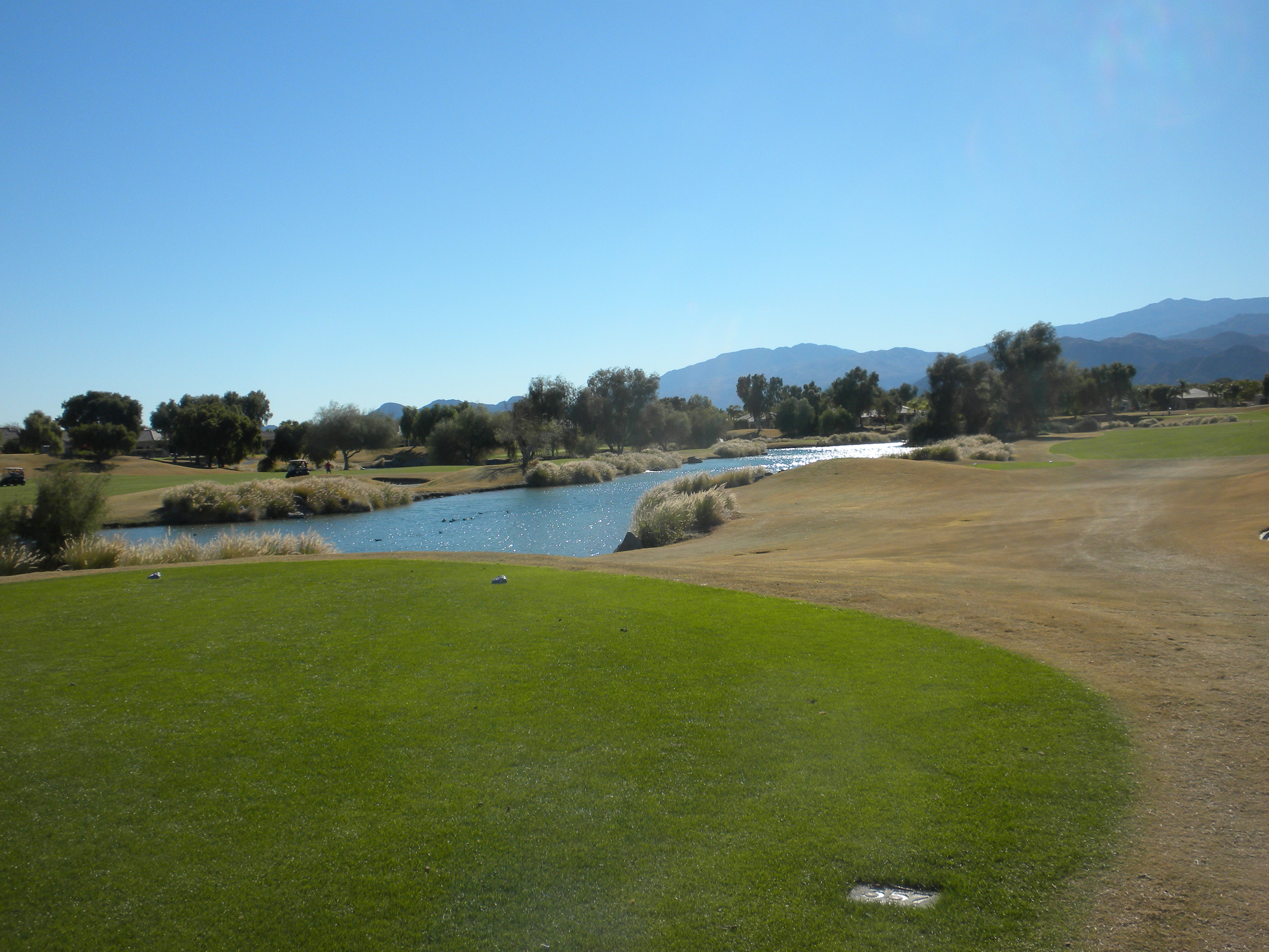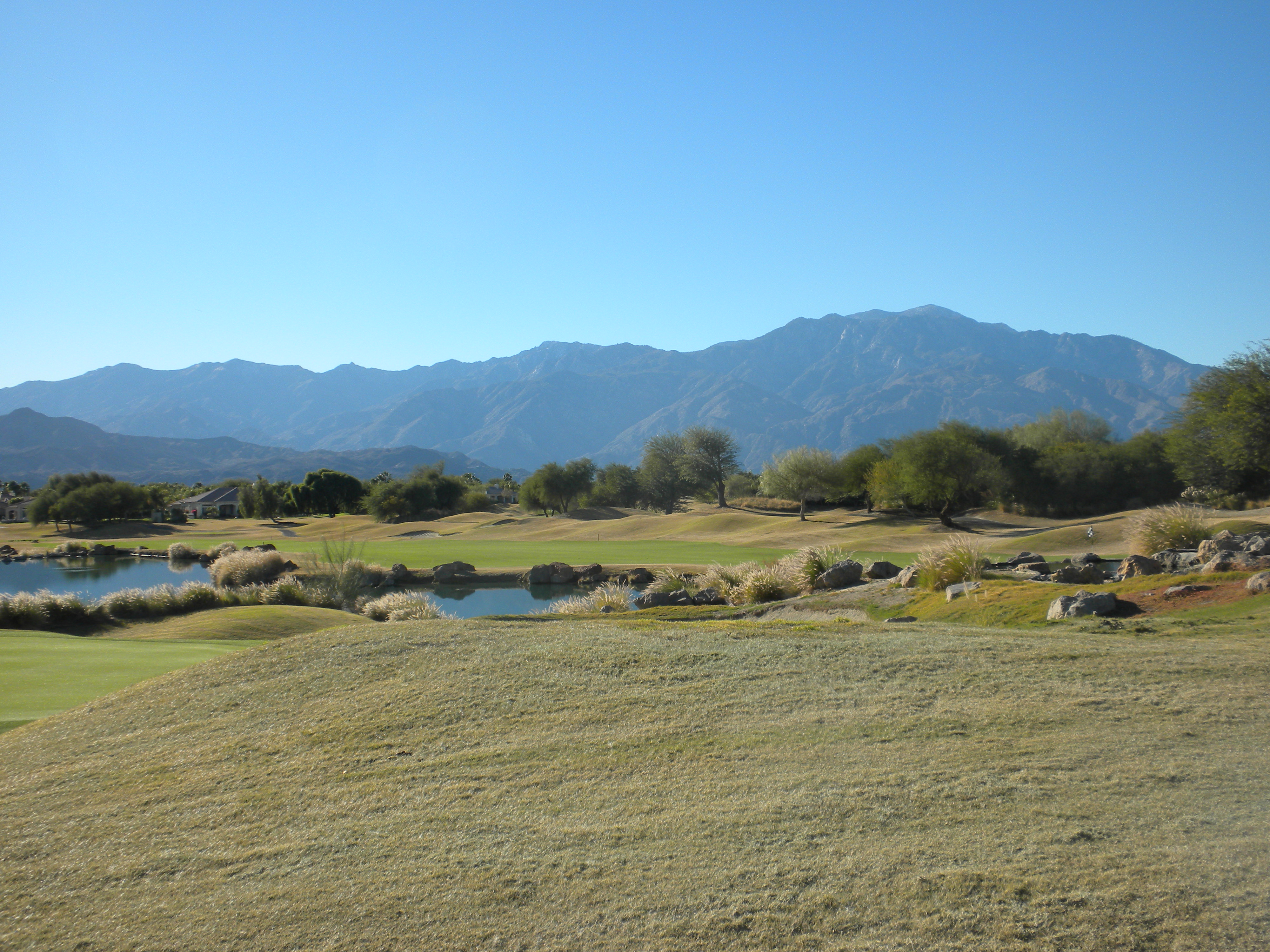 The homes are often fancier on this course versus yesterday’s course. This is a pretty and enjoyable course but for some reason I had more fun on Pete Dye’s “The Dunes” course in La Quinta. These greens aren’t quite as challenging as “The Dunes” either but there are some pretty water holes here.