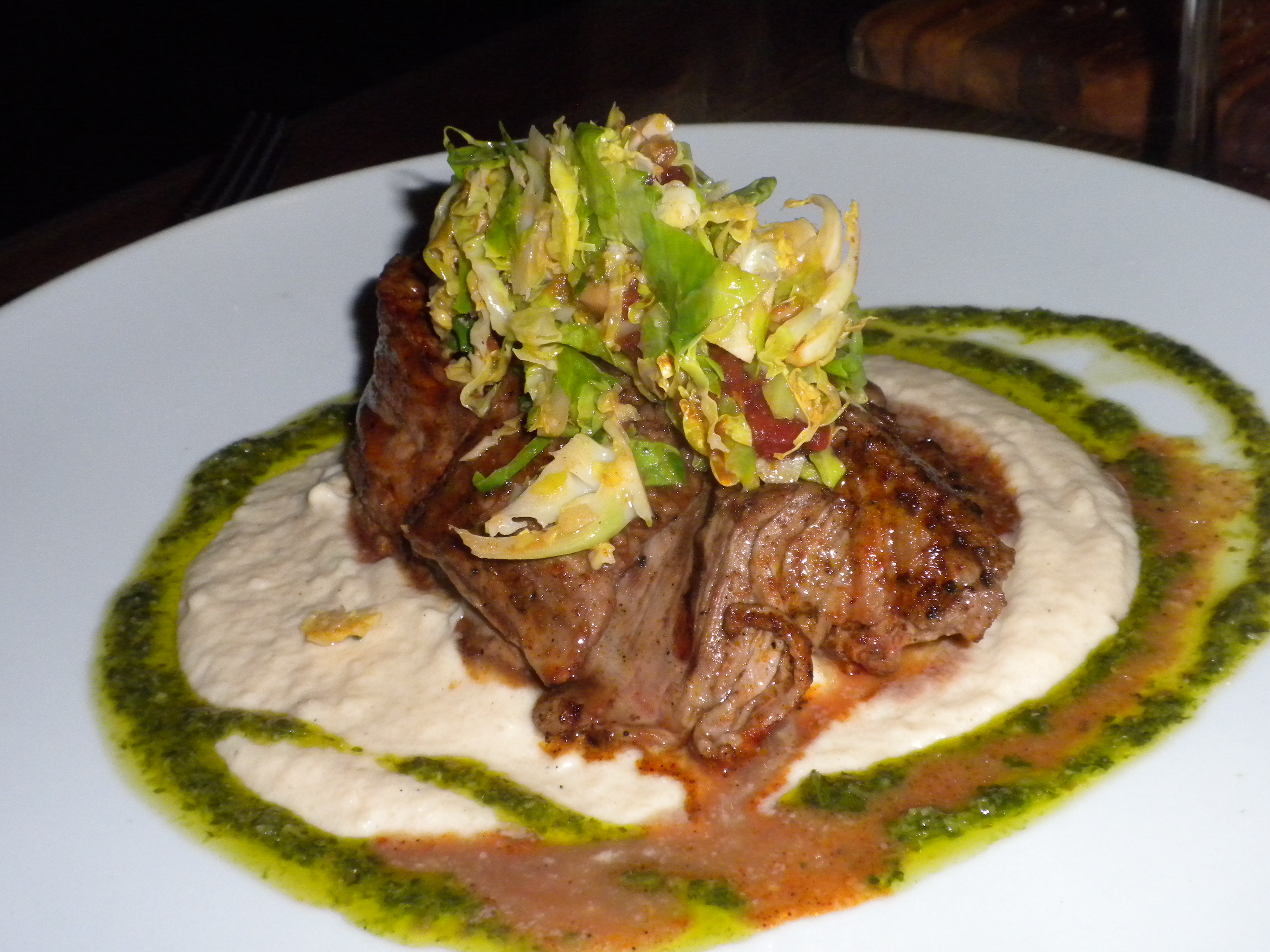 The sauces and salad on top are nice accents to this tender meat.