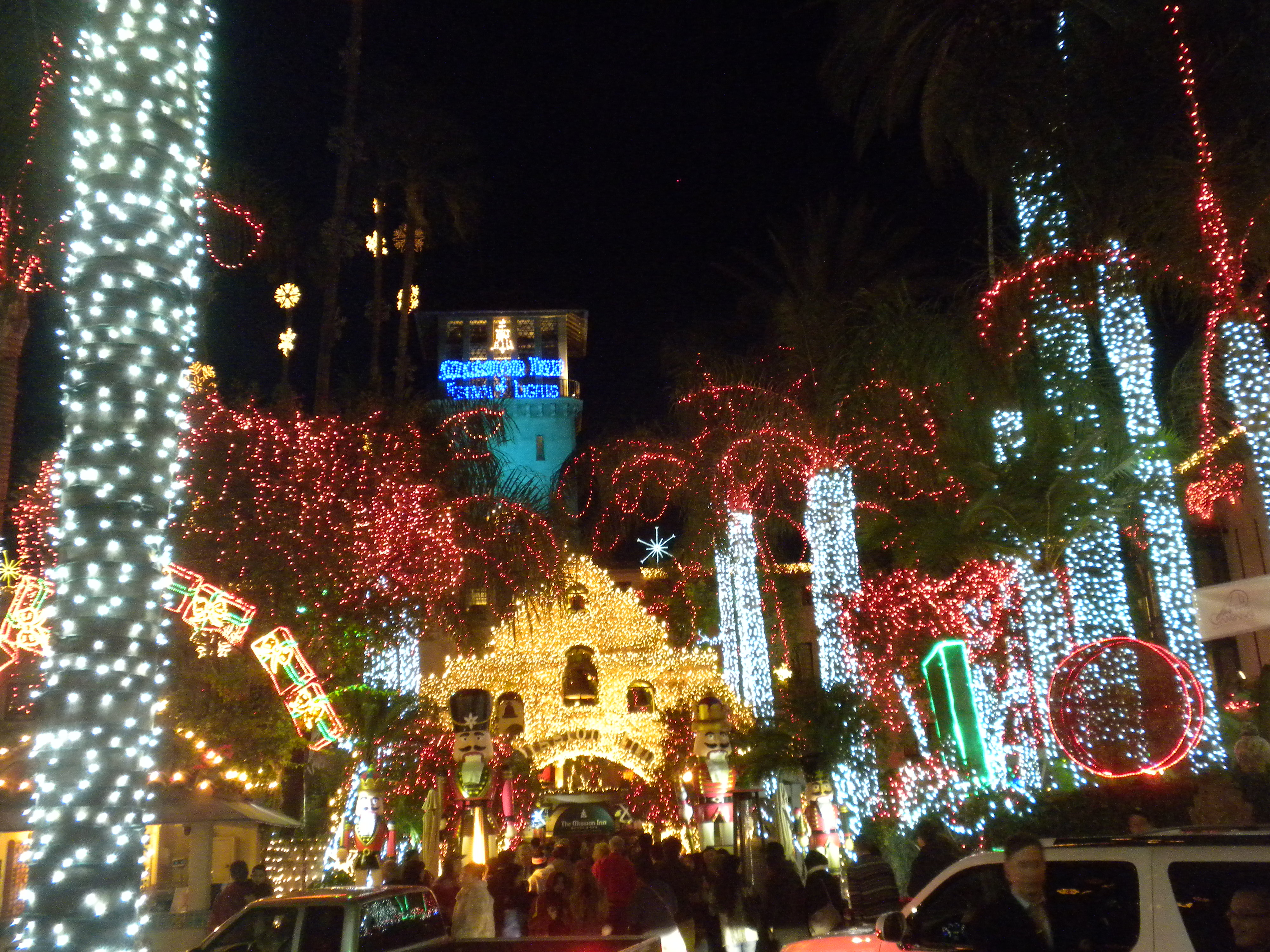At The Mission Inn (missioninn.com) they go deep with decor around the holidays. We pile into our vehicles and venture over just before dark.