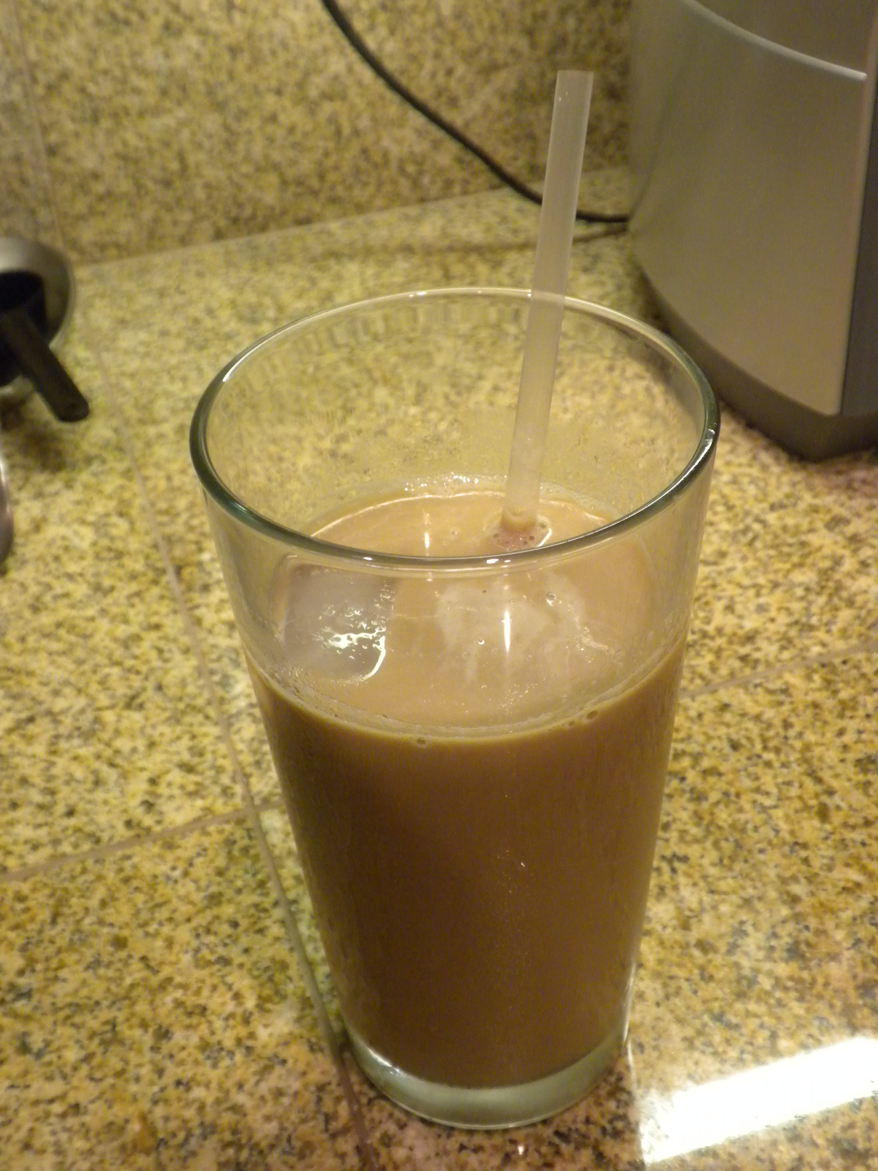Step 4: Gather or have ready your chilled coffee, whole milk (some like Coffee-mate), half/half, Canadian maple syrup, ice cubes and a plastic straw.