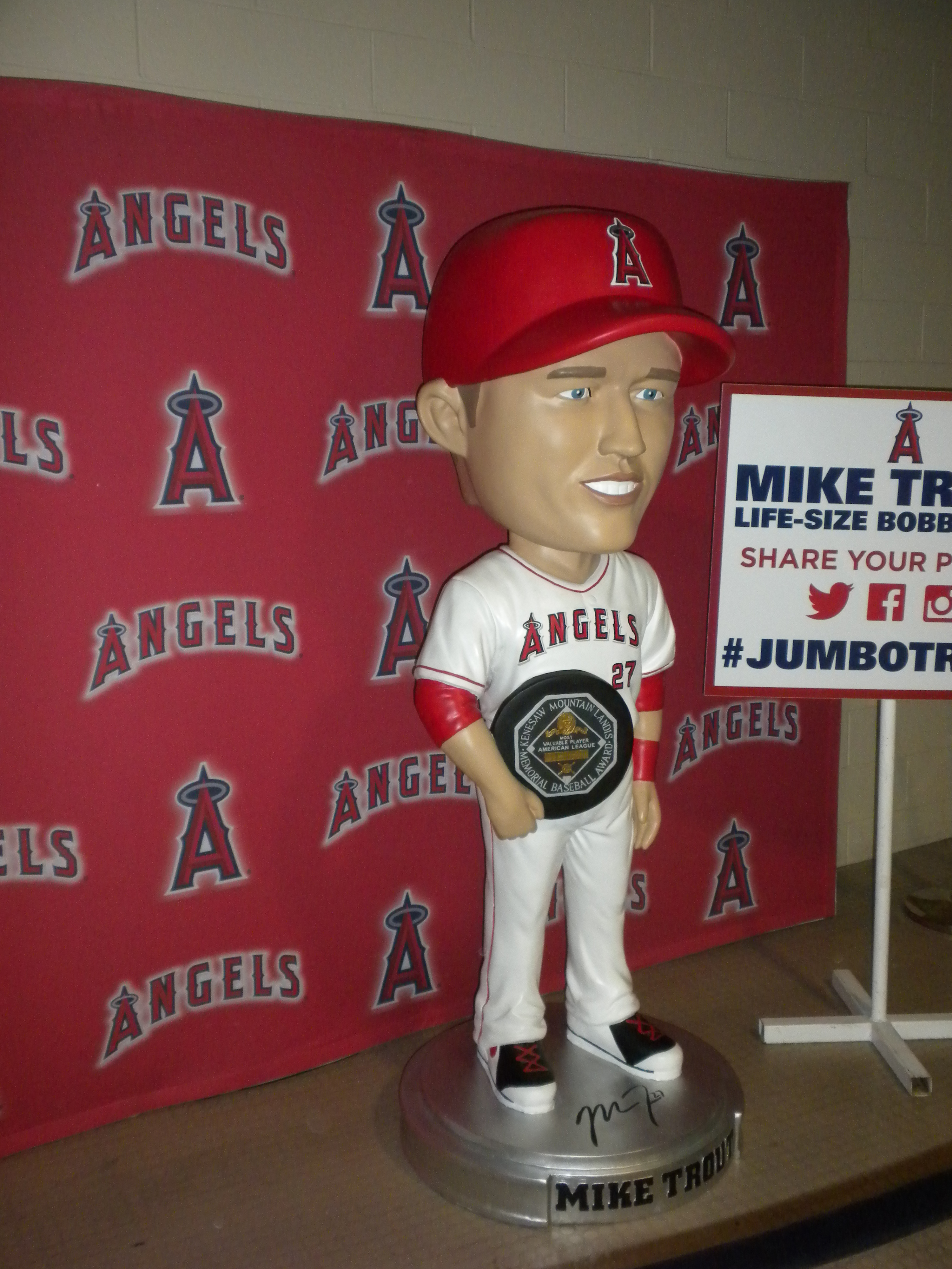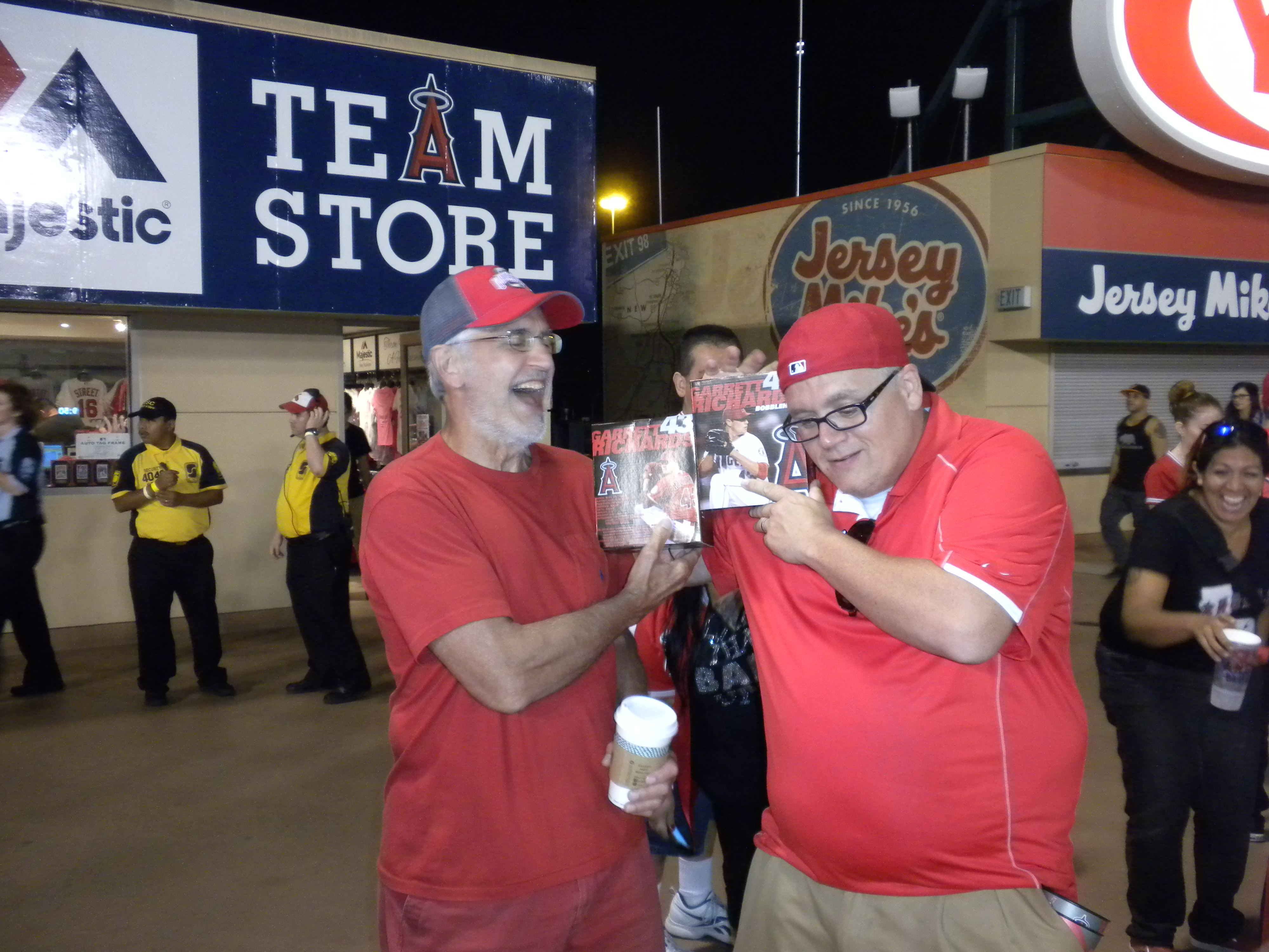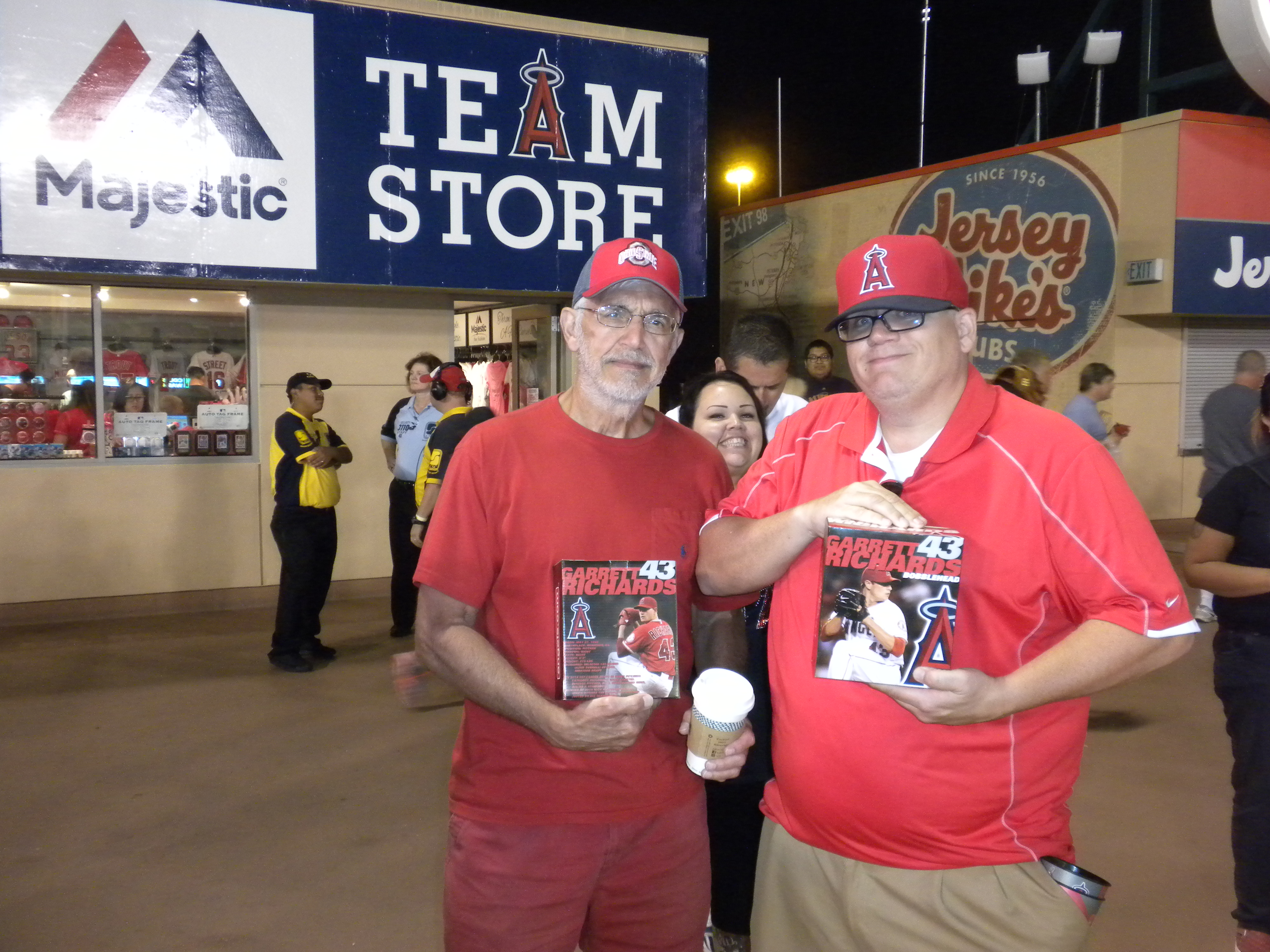 Tonight we receive the Garrett Richards (pitcher) bobblehead upon entering the park. It is Mike Trout’s birthday today and he went “yard” (homered) tonight.
