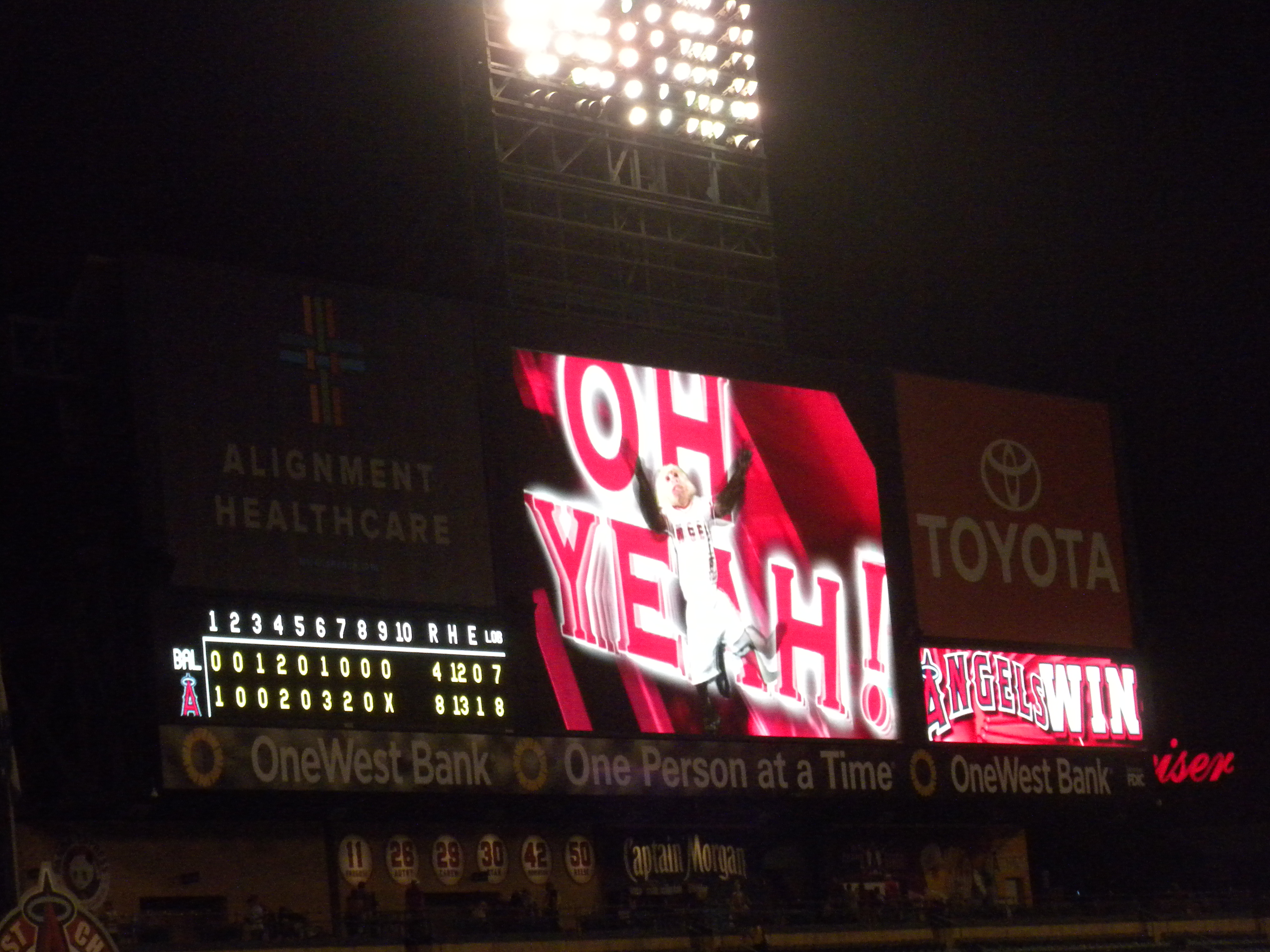 We’re all enjoying the Angel’s 8-4 win over the Oriole’s. The Angel’s had 13 hits to the Oriole’s 12. We’ve rarely see hitting like this at the many other Angel’s games we’ve attended.