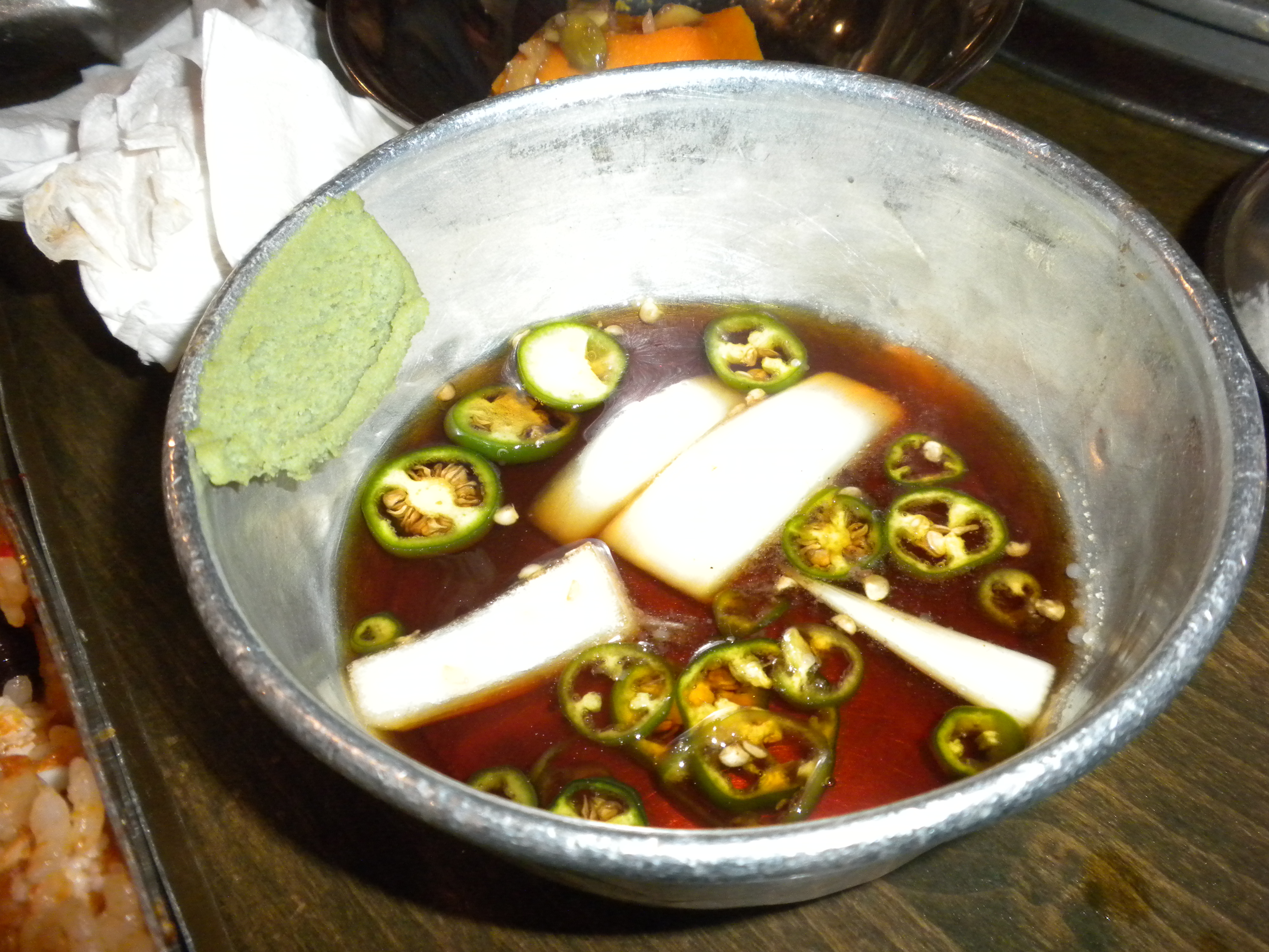 If it resembles a retro tin dog food bowl it equals “street food”.  Wasabi is smeared on the inside edge of the bowl.