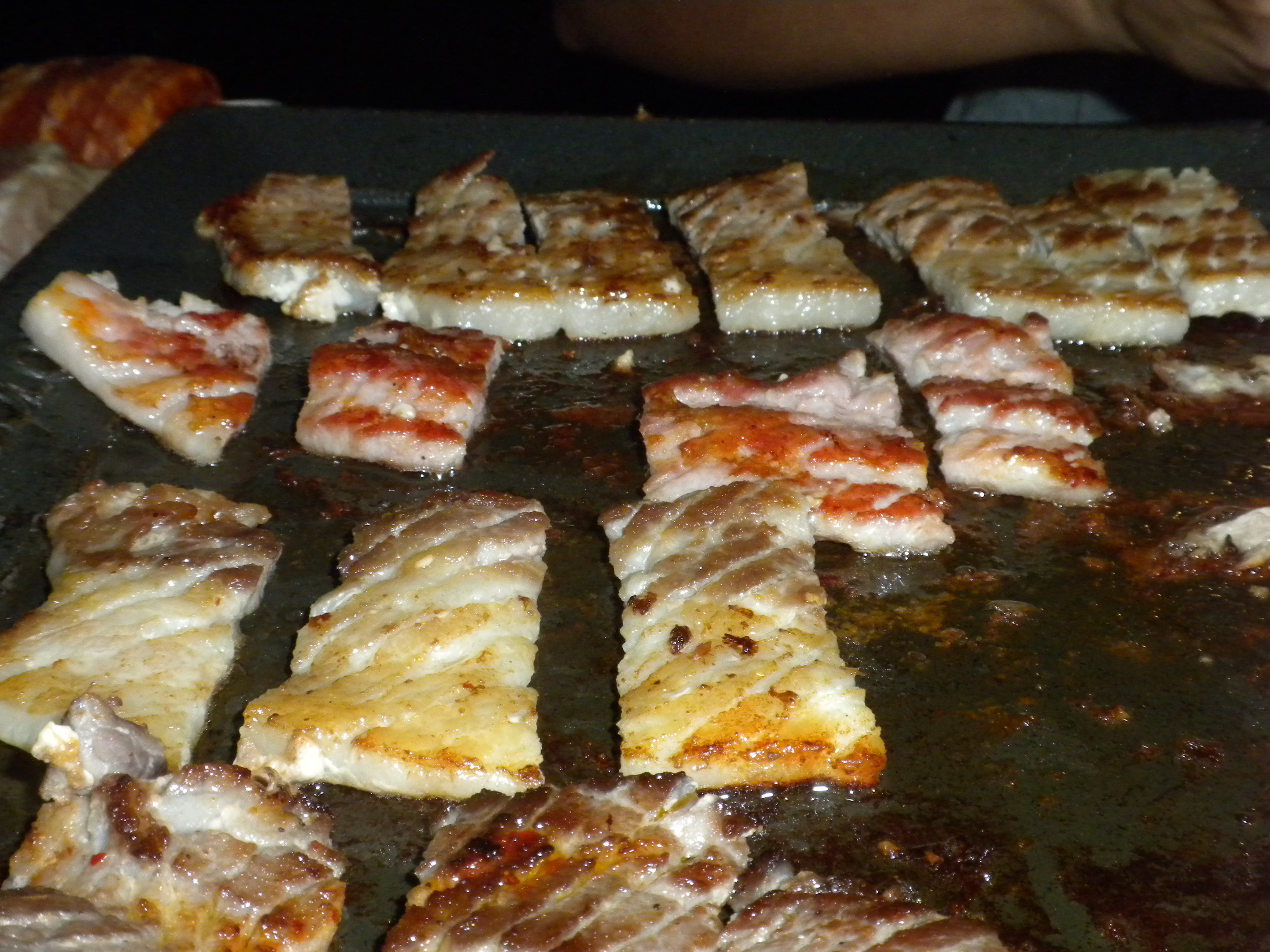 There are times in this life when the food gods work in unison to offer up a delicacy which is nothing shy of paradise in the mouth. Dining at Eight Korean BBQ (eightkoreanbbq.com) surely delivers in this regard. The 8 flavors of pork which we consumed were as follows: rosemary; kimchi (“red pepper”); ginseng; garlic; regular; miso; curry and wine. Enjoy the “sniff” my friends.