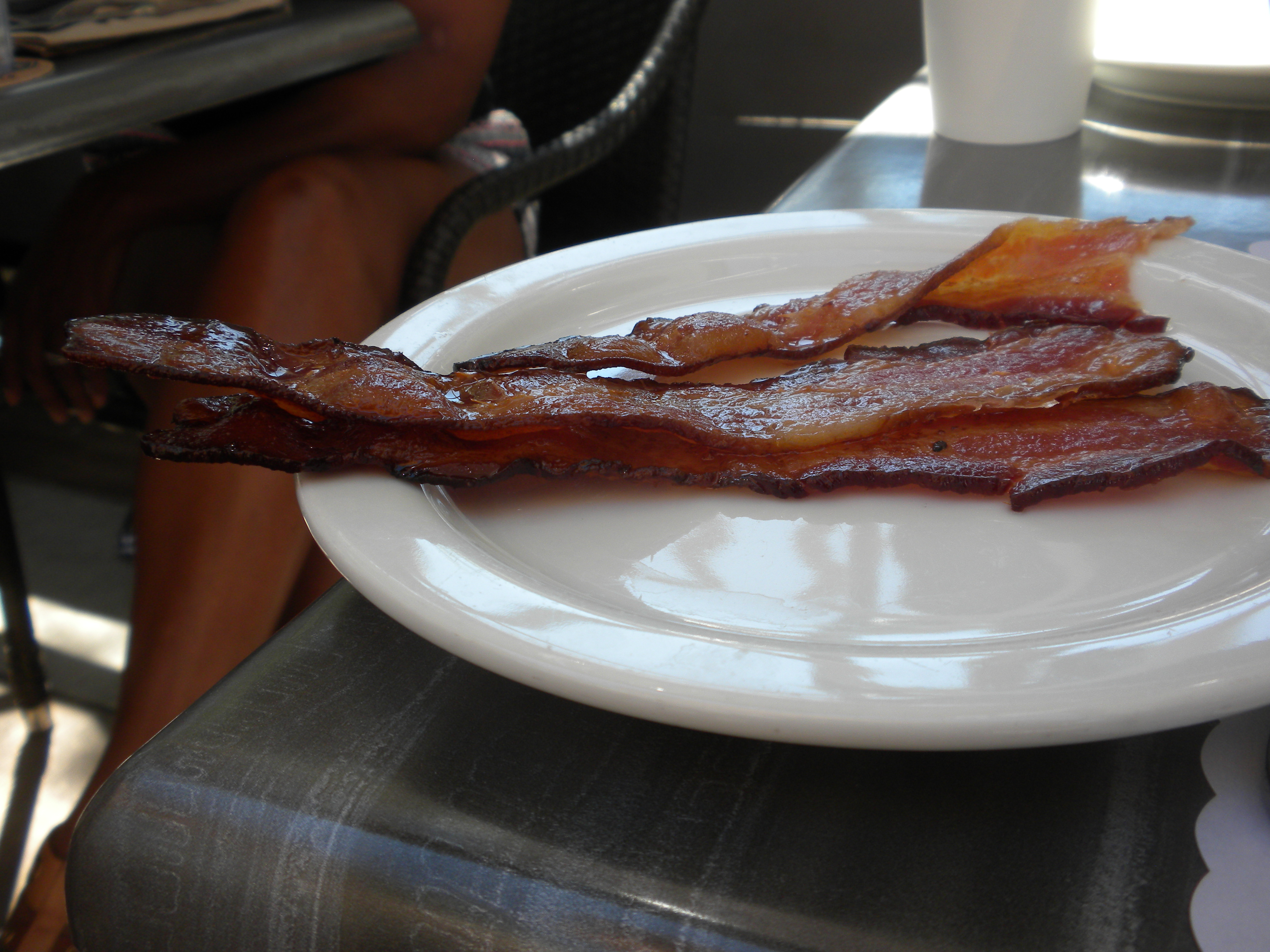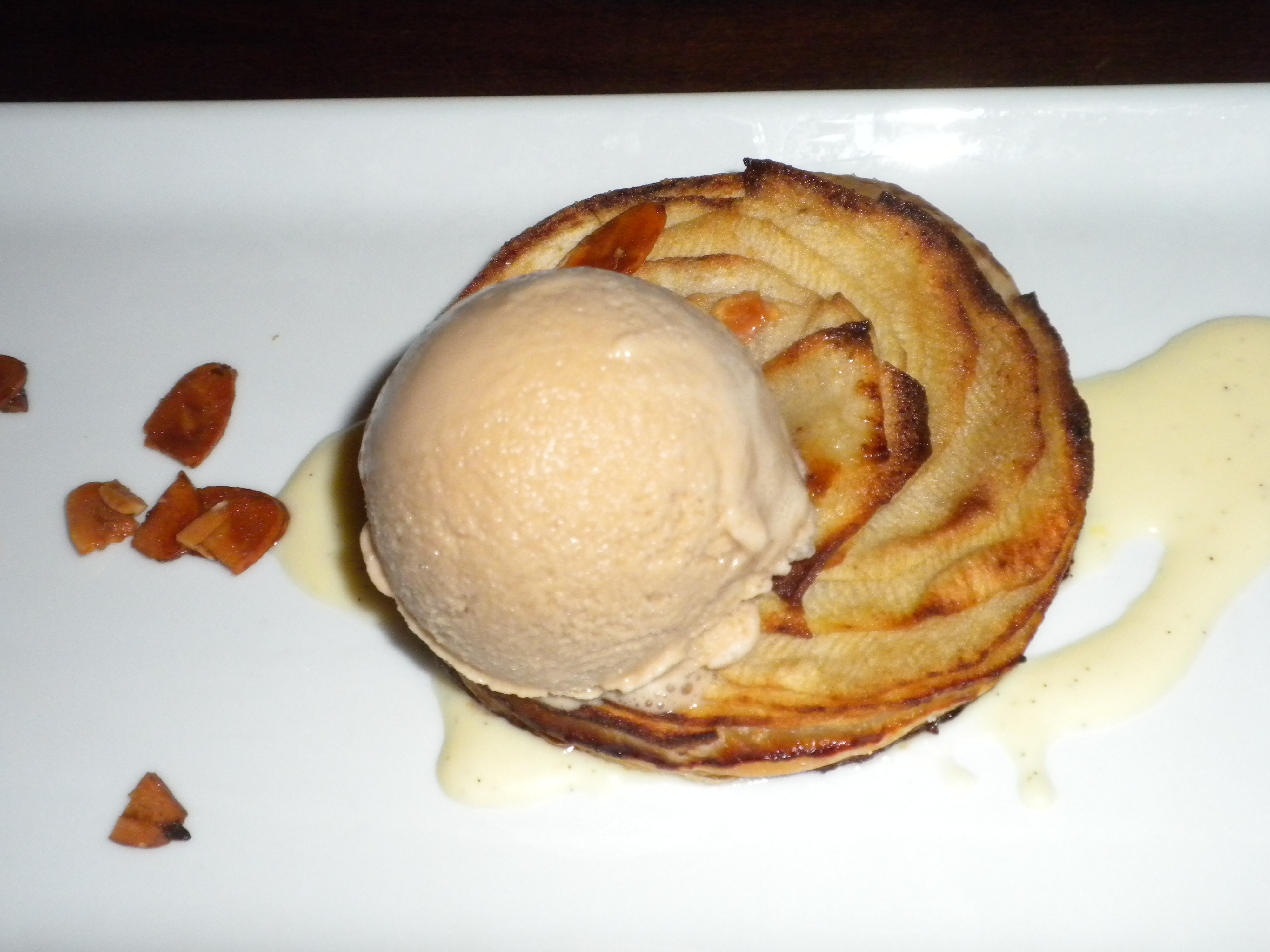 It came with a scoop of vanilla bean ice cream and maple syrup. It’s 90 degrees Fahrenheit today on their patio so ice cream and iced coffee were our combatants for the heat.