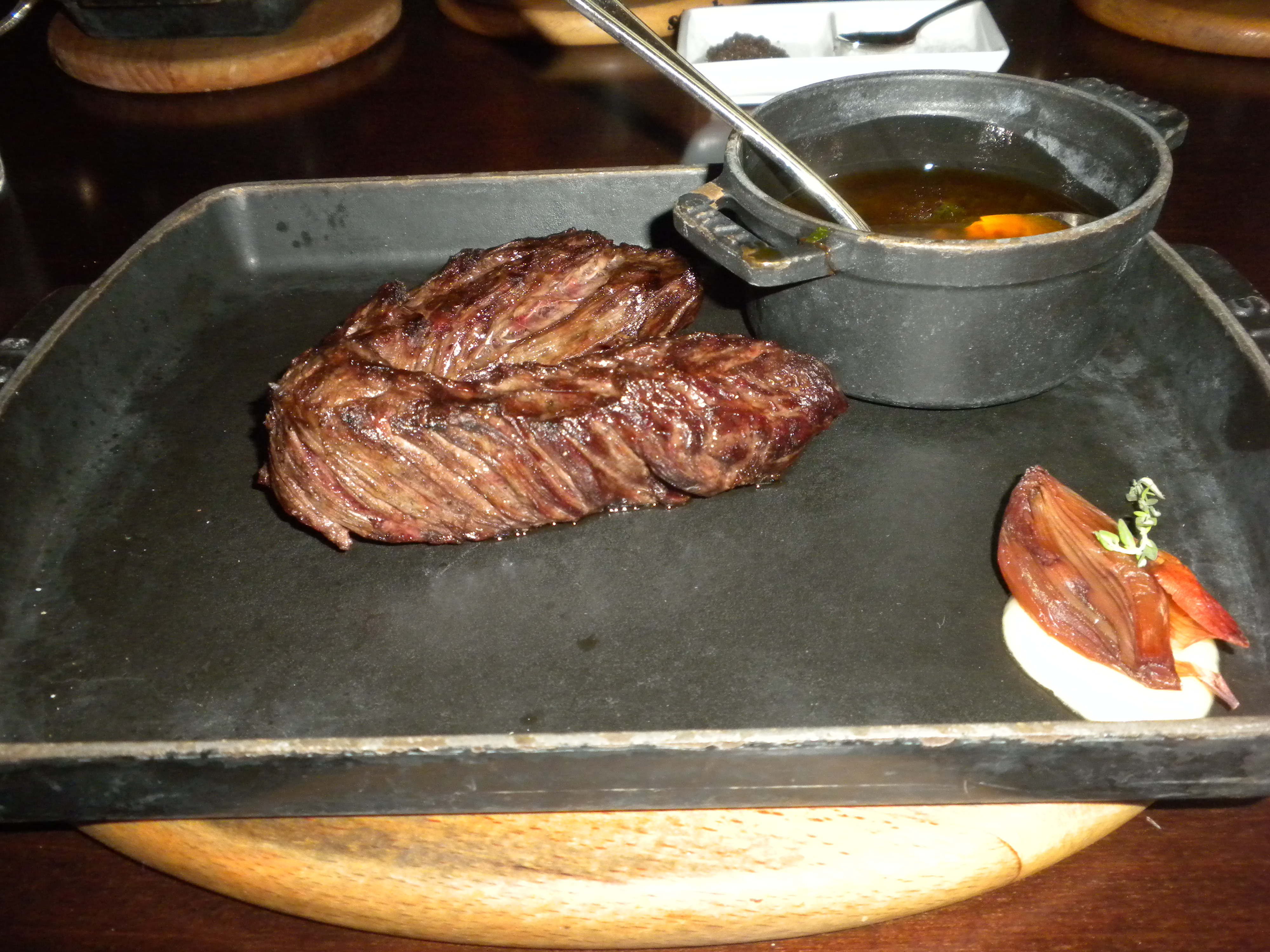 The sauce is chimichurri and needed more finely chopped parsley. Fortunately, they went heavy on olive oil versus heavy on white vinegar. There are two kinds of gourmet smoked salts on our table which were from Washington state. This entree was nearly “pure gold”.