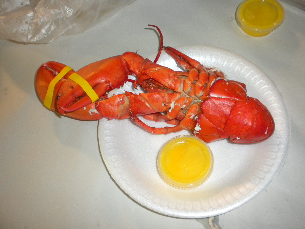 The lobster meal costs $20.00 each and includes baked potato, watermelon cubes and liquid butter. I believe this is a “limited time only” offer during the Redondo Beach Lobster Festival weekend in September.