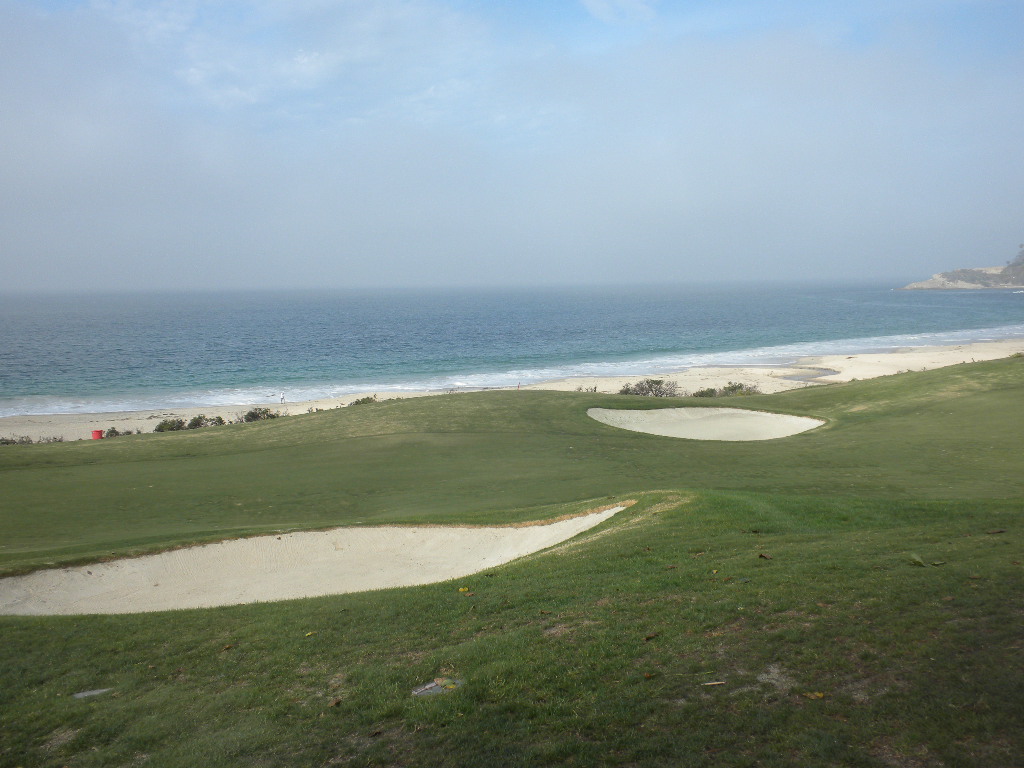 This par 4 hole is spectacular with the beach (not a sand trap) just over the traps shown.
